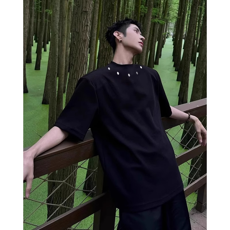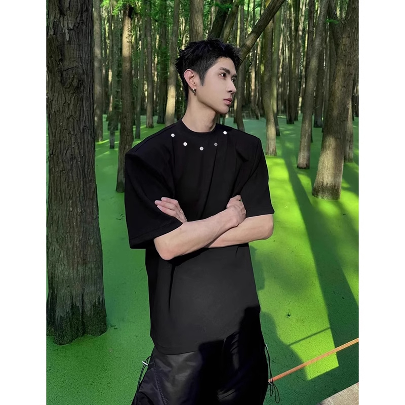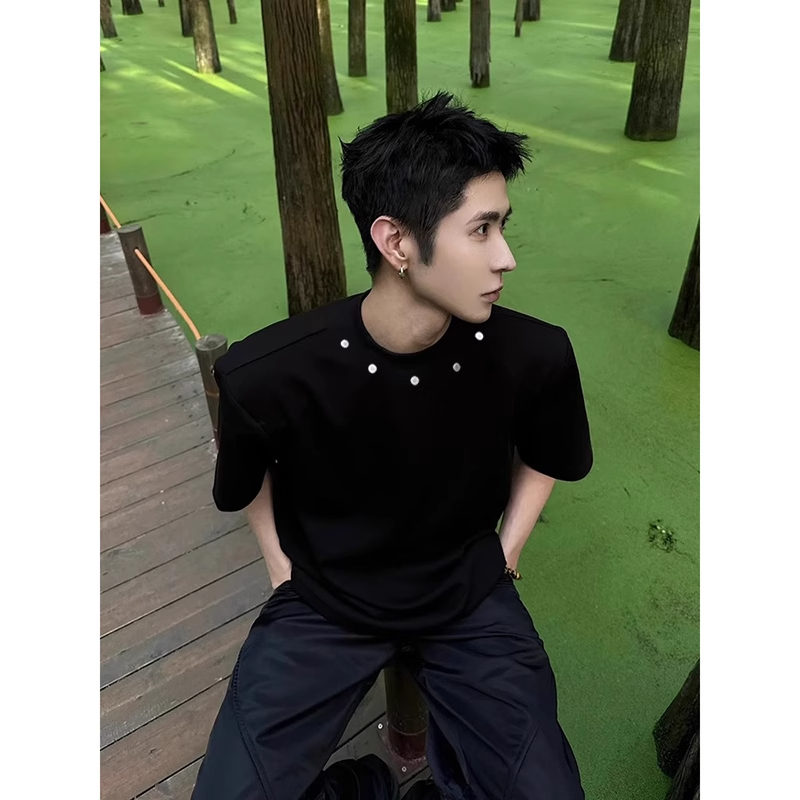 金素设计感垫肩短袖男款夏季美式高街重磅正