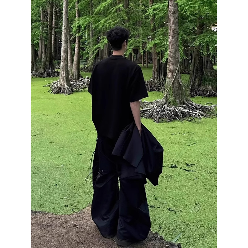 浅砂岩冰丝速干裤子男夏季薄款美式伞兵褶皱