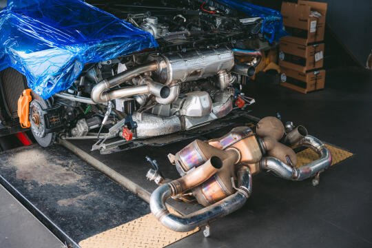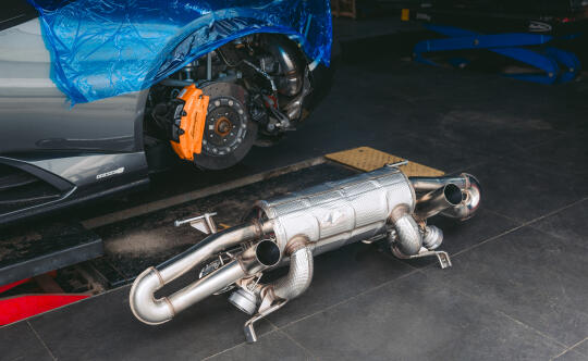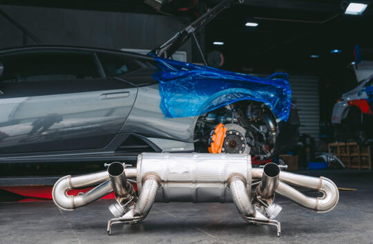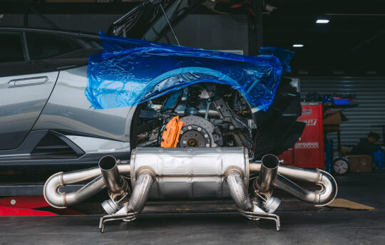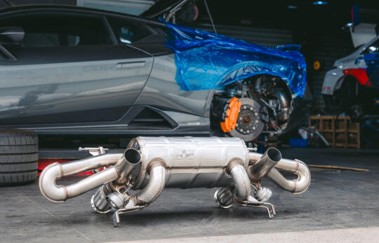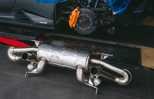 兰博基尼huracan tecnica原厂国6排气毫无声音 这次这台tecnica更换欧规排气+欧规程序 可以说是根本感觉不到一台v10的声浪 所以兰博基尼原厂赛道版排气是evo、sto、tecnica最好的选择、全部原厂logo支持 释放v10该有的声浪、欧规程序解决发动机亮灯和冷车启动怠速抖动厉害的情况