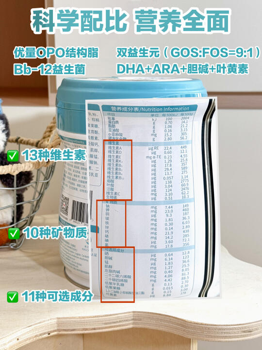 除了营养奶源优,它的吸收配方也毫不逊色!里面还添加了全新升级的OPO结构脂,脂肪结构接近天然营养,SN-2棕榈酸含量显著增加,营养吸收效率直接按下加速键!还有双益生元(GOS:FOS=9:1)和Bb-12益生菌,强强联合维护宝宝肚肚健康💪,小肚肚舒服了,宝宝自然快乐出行,老母亲我也能实现轻松带娃啦!
