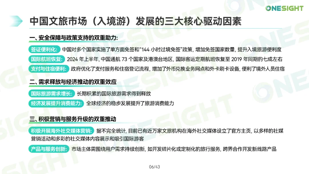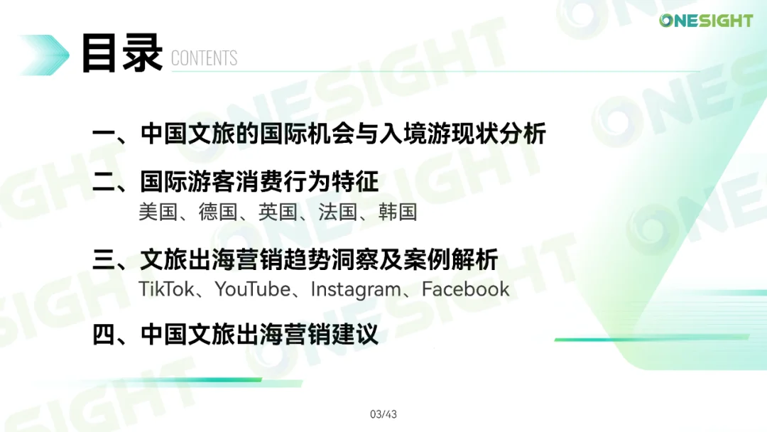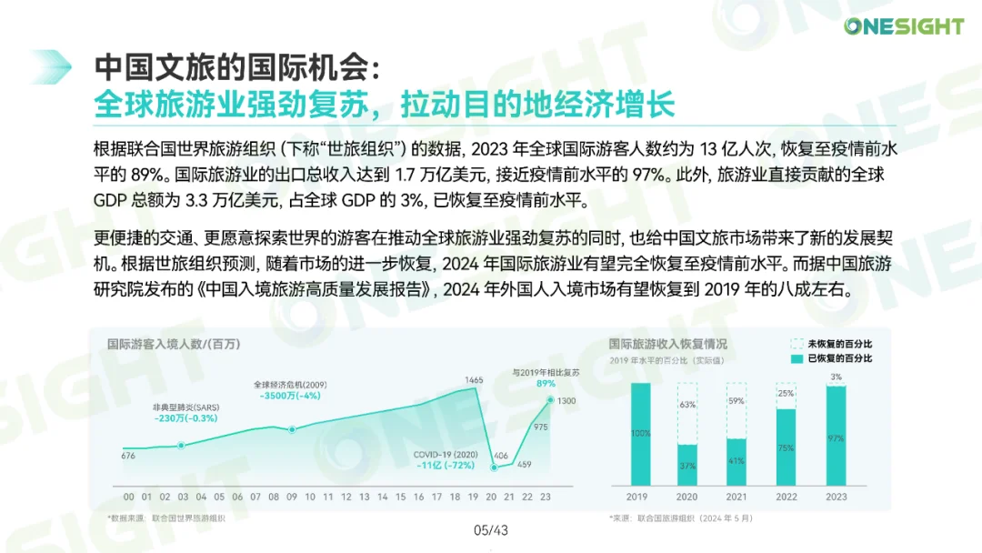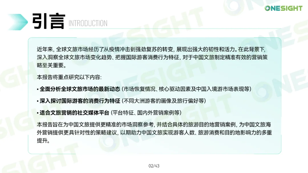 今天我为大家整理了一篇由OneSight发布的《2024中国文旅出海营销趋势洞察报告》共43页,深度解析了中国文旅在全球市场中的机会与挑战。