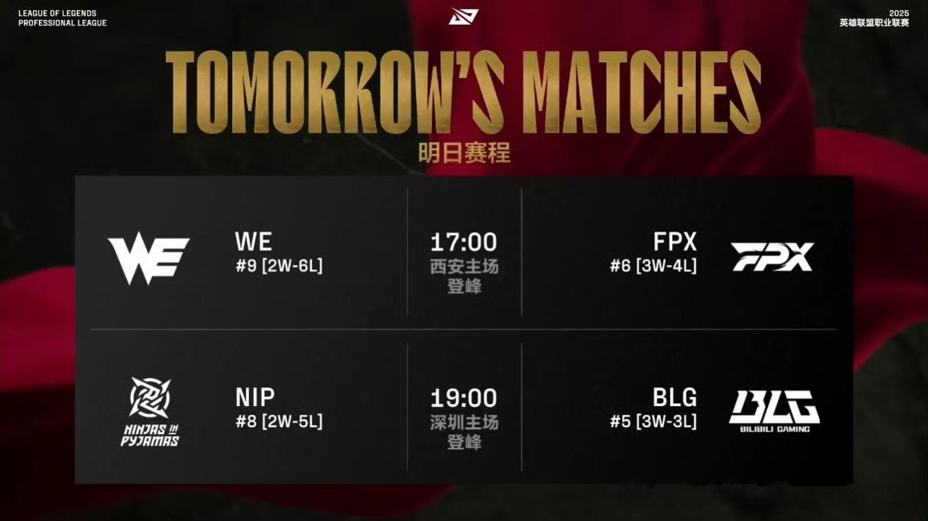 2025LPL第二赛段常规赛组内赛今日赛果、积分情况以及明日赛程: