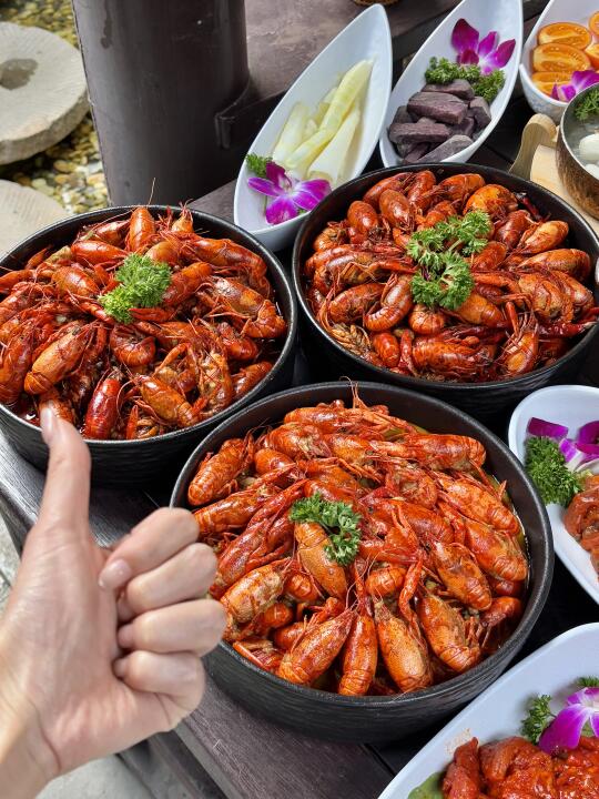 汤底更是无敌!鲜到🉑再喝三碗!完全不需要其他调料!到龙虾🦞季节了!个头大,每个都满黄