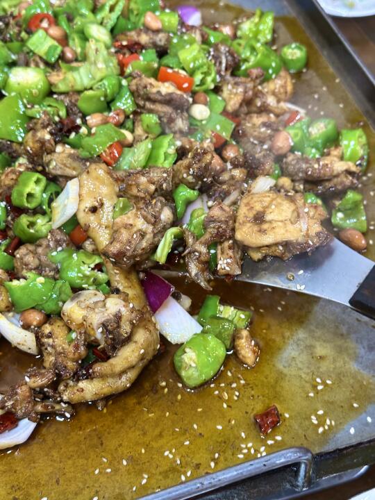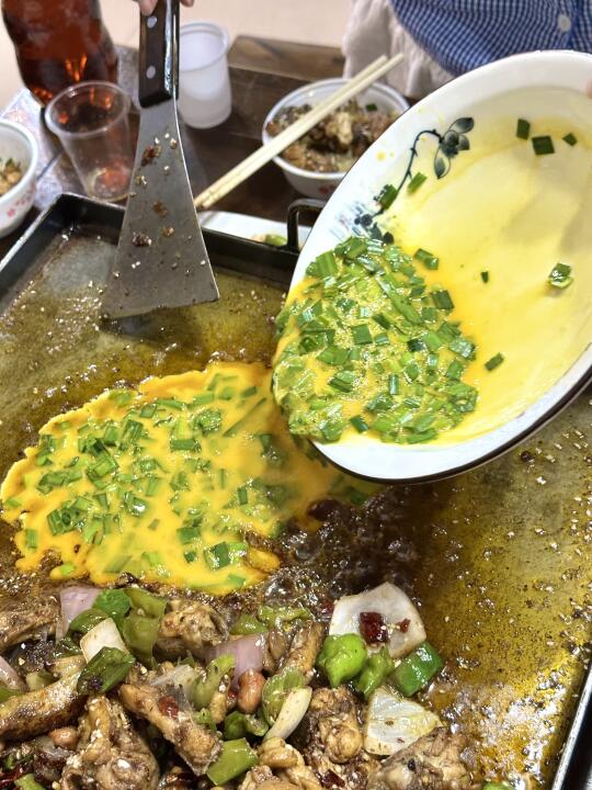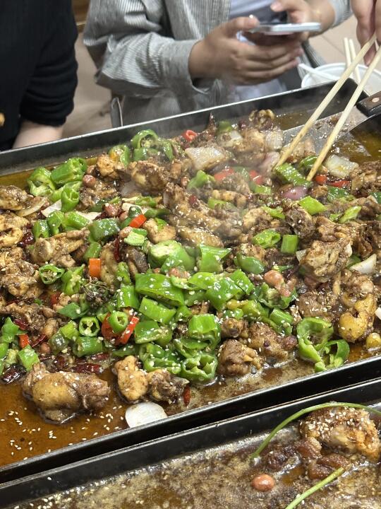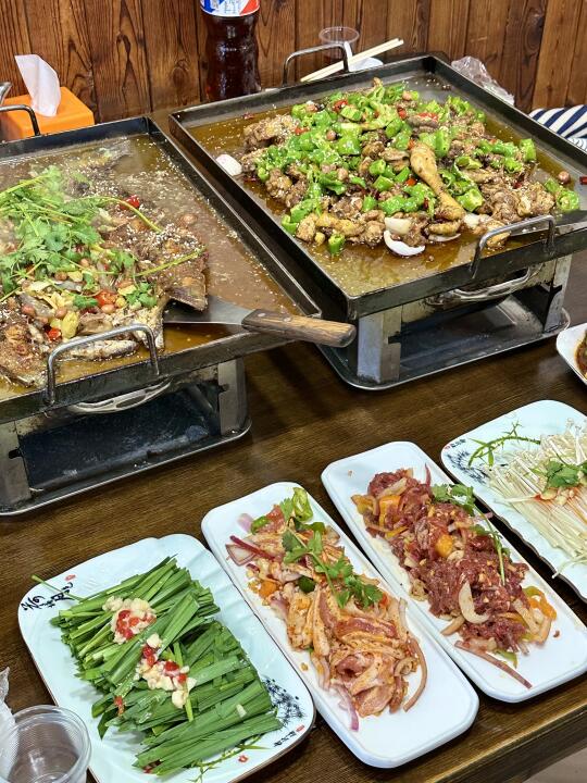 建议所有的铁板烤鱼都按这个标准来! 开在大学旁边价格真的没得说! 人均不到50!!真的便宜好吃! 一大盘端上来直接香迷糊了。。。😢 花椒鸡的佐料真的很舍得给! 每一块鸡肉上都有花椒和青椒的香气! 烤鱼也很好吃!!里面还可以加配菜 强烈建议点那个韭菜鸡蛋 加进去滋滋冒泡 非常香!!三大的学生都知道这家 真是会找!