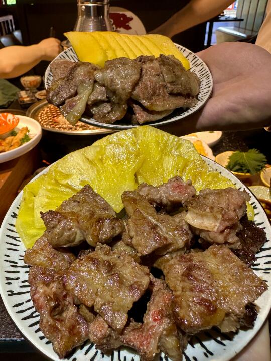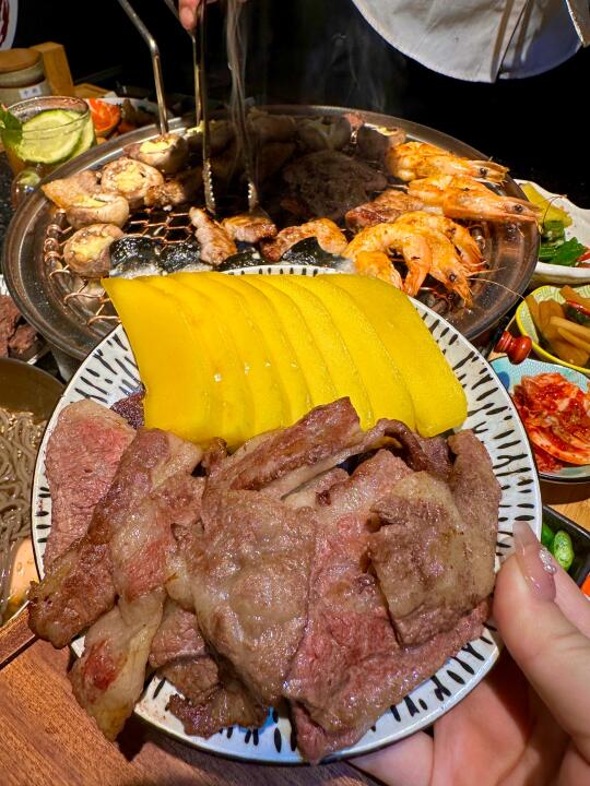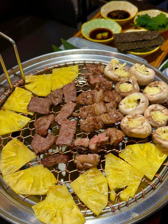 在长沙找到了一家会反复去的宝藏烤肉店,真的吼吼吃!品质烧肉拼盘、鲜果牛肋条、现切牛排都可以点,肉质很好!加上菠萝芒果一起吃真的巨好吃!还有碳烤活鳗、招牌帝王卷、冷麦面每次来都会点~导航到 📍盛安炭火烤肉烤肉)就在德思勤夜市,人均不贵还蛮值的。