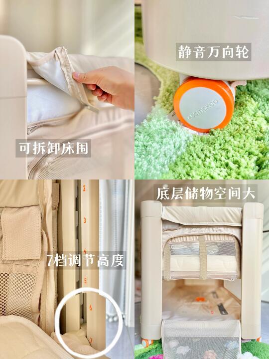 这款婴儿床可以根据床的高度来调节