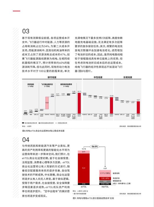 [二R]运营成本:eVTOL的运营成本极具优势,纯电构型每公里综合运营成本在9.2-15.7元之间,混动构型低至7元。