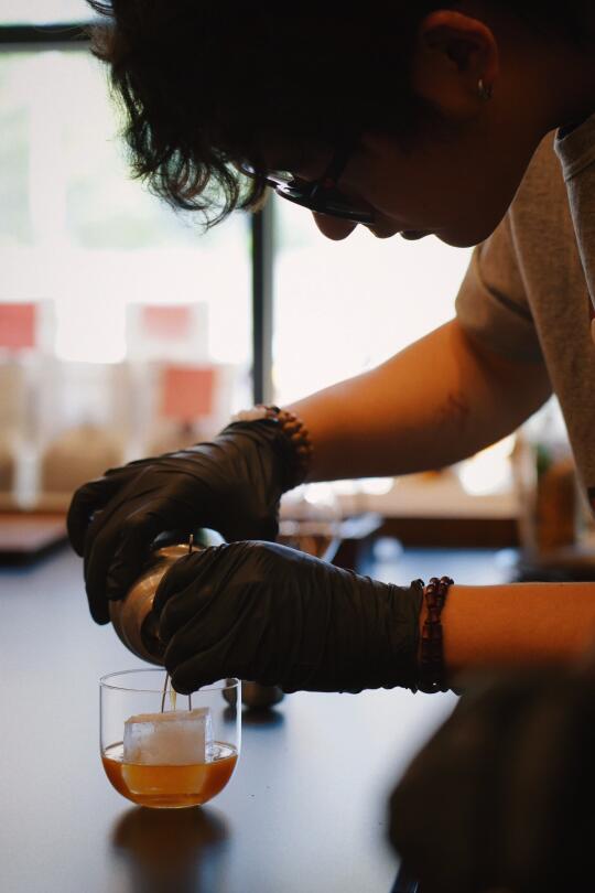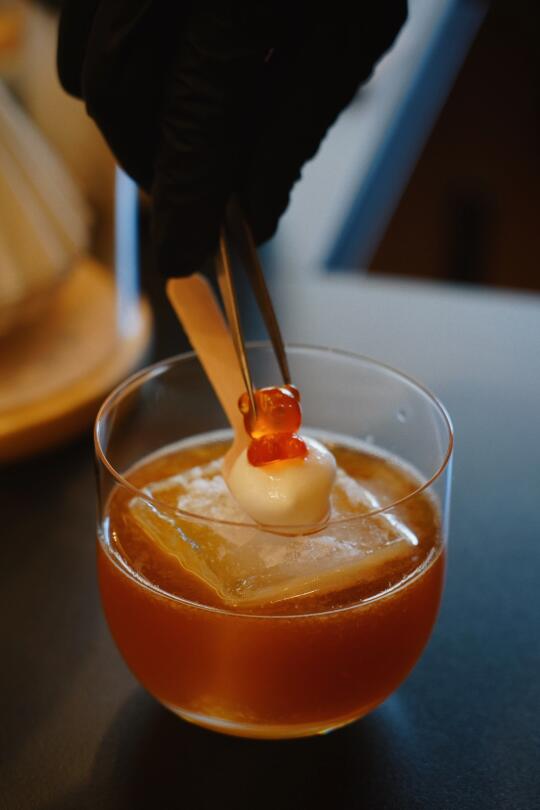 这次正好刚上过新,一些开店就在的品我没有点。小熊软糖实在可爱,毫不犹豫就点了,下面配的是米乳,整杯水果风味很明显,桃子香气很足,但层次欠缺了一点。第二套选的是奶咖特调,我真的很爱肉桂,这杯的肉桂量确实很足,燕麦奶的风味比较突出,有点像一杯奶茶。