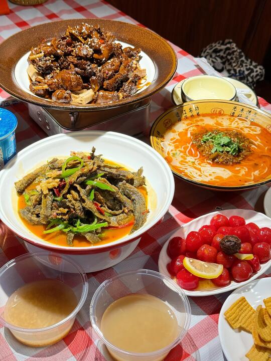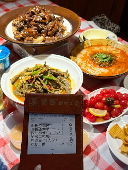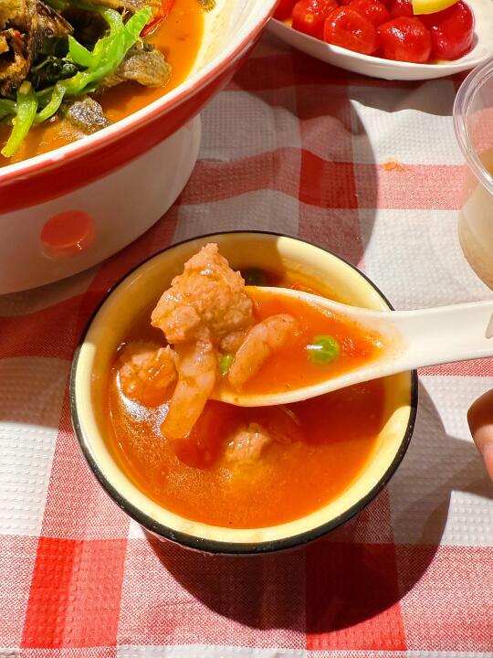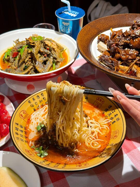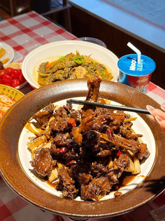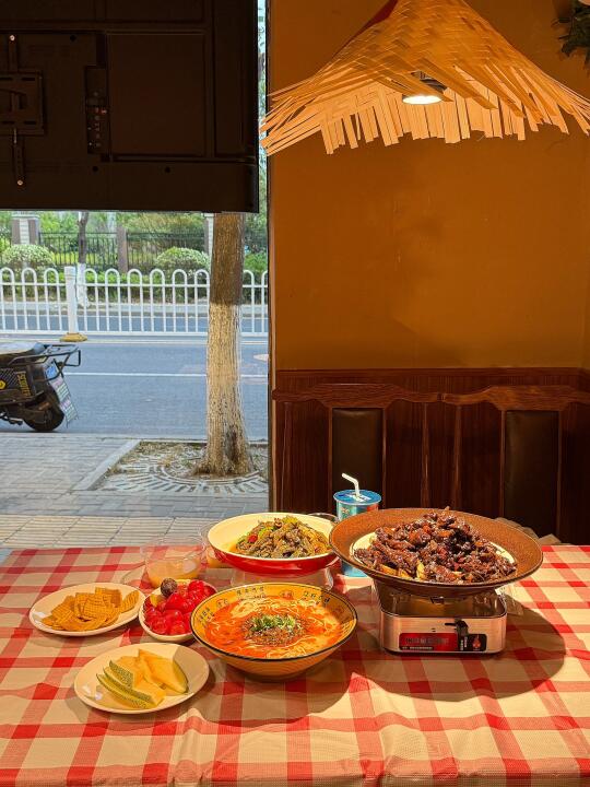 碰到这种烟火气满满的店就走不动路[笑哭R] 这家吃饭真的好有氛围感!菜直接放在门口🌽新鲜程度不怕考验是吧[自拍R] ✔️绝味黑鸭煲 熟的周黑鸭的味道!这个强推✅特别入味但是不是辣的很夸张的那种🦆香迷糊了 ✔️话梅圣女果 只要外出吃饭有这个菜我是必点的怎么都不会踩雷的菜 夏天清凉小零食✌️ ✔️西红柿虾仁丸子汤🍅老板简直是天才 怎么想到把番茄汤做的这么丰富的!怒喝好几大碗🥣 ✔️ 宜城米茶🌾感觉下火很健康的味道🆓的嘿嘿 干饭总结📖: 是会跟朋友来襄城玩必选的餐厅🍴食材新鲜菜品有新意环境也很舒服😌