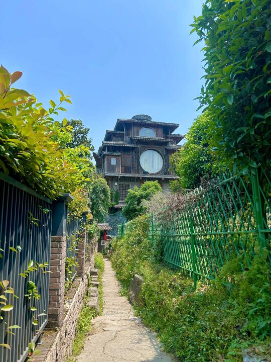 避开人山人海桂花季的满觉陇 city walk 好舒服~虽然茶叶都采摘完了,但是依旧美丽! 天气好好,好适合出游🍃🐾 千与千寻汤屋:可以导航到FROMHERCOFFEE沿着咖啡馆的小路一直往上走就可以啦,只有一条路~ 个人认为最佳是茶园里面,龙井和奶茶都不贵~可以不限时拍照📷 白鹤峰山顶秋千:大概十几二十分钟,沿着楼梯往上拍,山顶可以俯瞰到西湖全貌,风景美丽 原路返回下满觉陇~