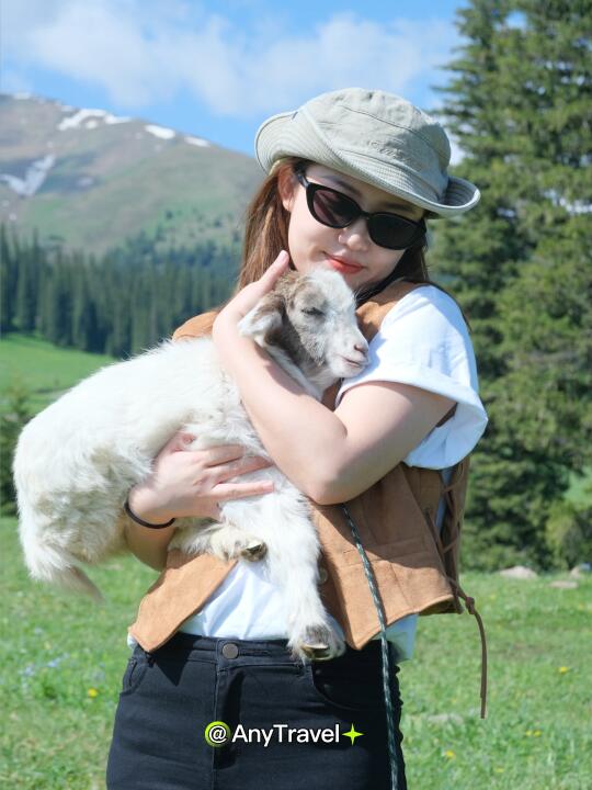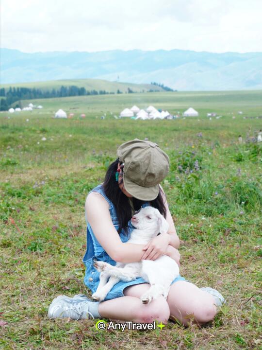 伊犁很多草原都有小羊可以拍照 5-10元不等 如果你也喜欢羊咩咩🐑一定不要错过哟 趁他们小的时候多抱抱,不然长大后就只能变成羊肉串了[偷笑R]