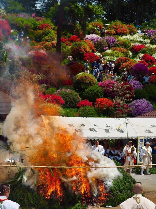 每年仅此一天!杜鹃花花园的中央广场上,大师筑起道场,点燃火堆以祈福,而后僧侣赤脚走过燃烧后灰堆,场面神圣又震撼