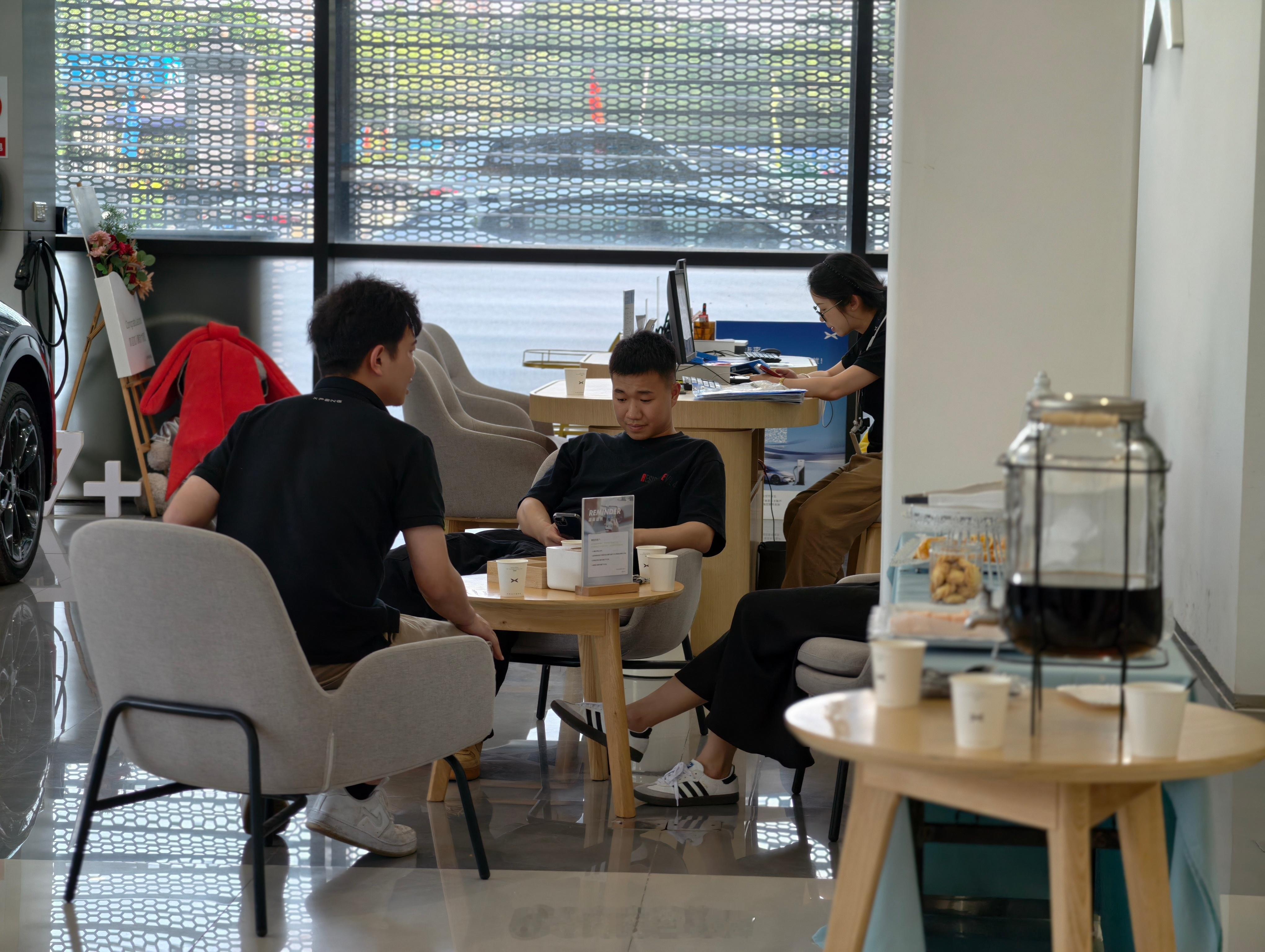 这边用户量不是特别夸张,但是进店用户频次还可以,就陆陆续续都有用户来看车,发现大部分用户还是对MONA跟P7+比较感兴趣