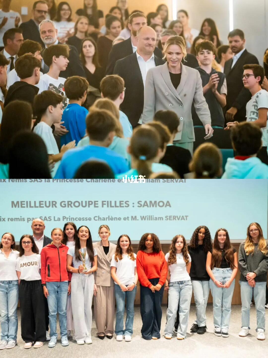 4月29日,摩纳哥王妃夏琳现身巴黎某国际学校颁奖典礼,以联合国儿童基金会大使身份为优秀学生颁发"教育创新奖"。 她身着简约香槟色礼服,佩戴卡地亚珍珠项链,展现优雅知性气质。活动中,她亲自为获奖学生佩戴勋章,并与获得环保科技项目的14岁女孩探讨气候变化应对方案,其随身携带的笔记本记录着学生提出的"海洋塑料回收计划"要点。活动尾声,夏琳宣布将资助3所非洲学校建立STEM实验室,强调"教育公平是打破贫困代际传递的关键"。有媒体评价其"用行动诠释了现代王室的社会责任担当"。
