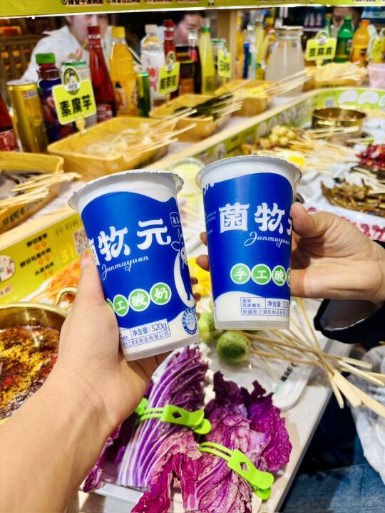 吃火锅不配菌牧元酸奶等于白吃! 本地朋友带我去的每家火锅店 桌上必摆着这个蓝白包装的酸奶 解辣解腻一级棒!