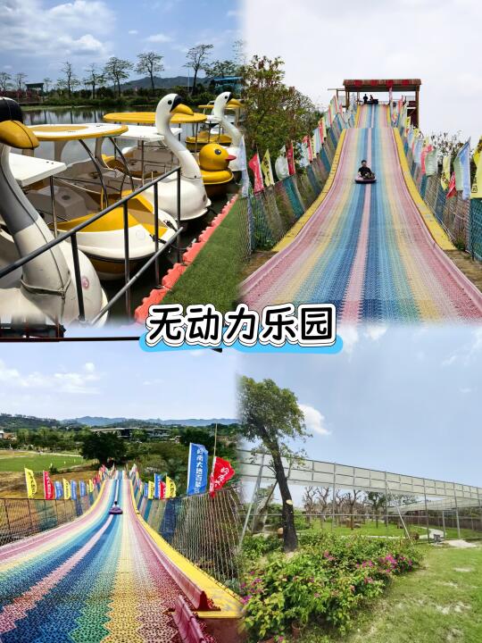 🌈彩虹滑道尖叫着俯冲!🌴椰林探险攀爬网考验勇气,高空索道秒变“人猿泰山”~