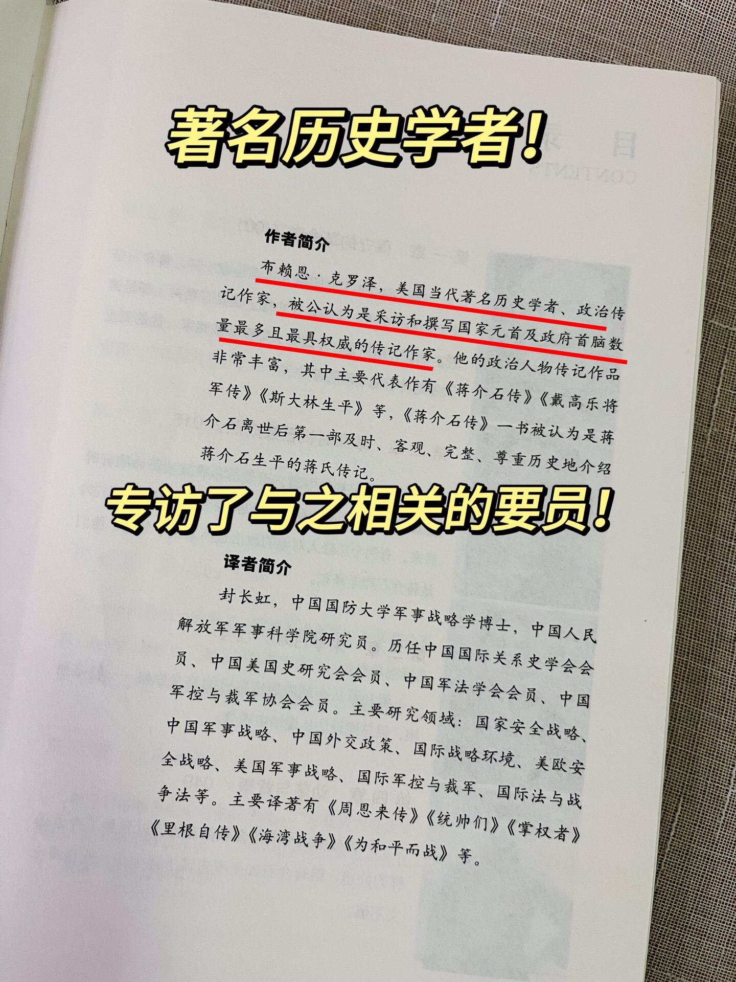 人物传记首要准则是尊重历史,这本在蒋去世后被誉为第一部真正尊重历史和当事人的传记,客观记录了蒋的一生!