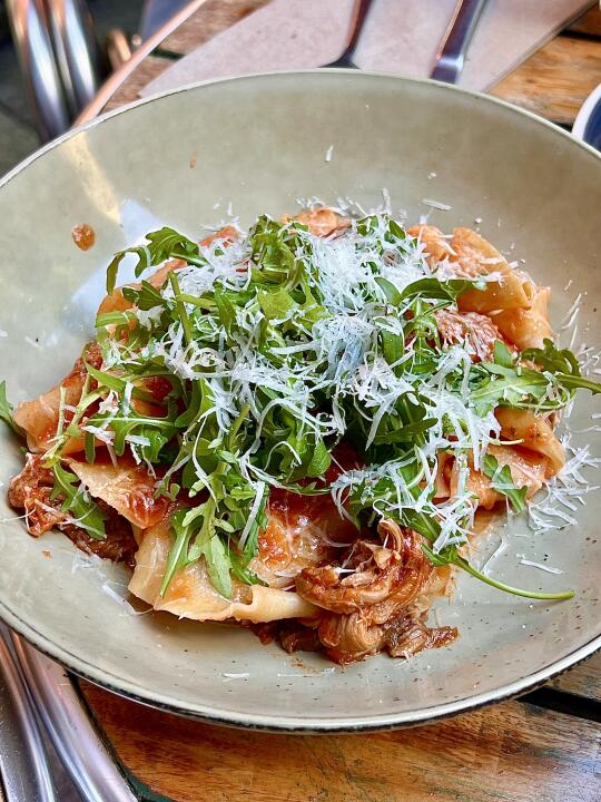 羊肉炖得很入味,一点膻味都没有,宽面吸满酱汁,上面撒了帕马森芝士,越吃越香。