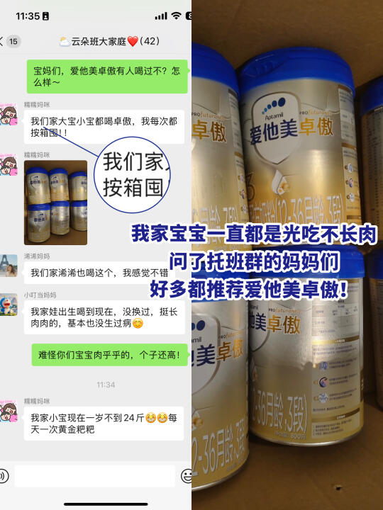 后来跟早教班级群的妈妈聊天时才知道,她们好几个宝宝喝的都是爱他美卓傲。跟爸爸连夜在上研究了好久,最终我们决定试试卓傲~