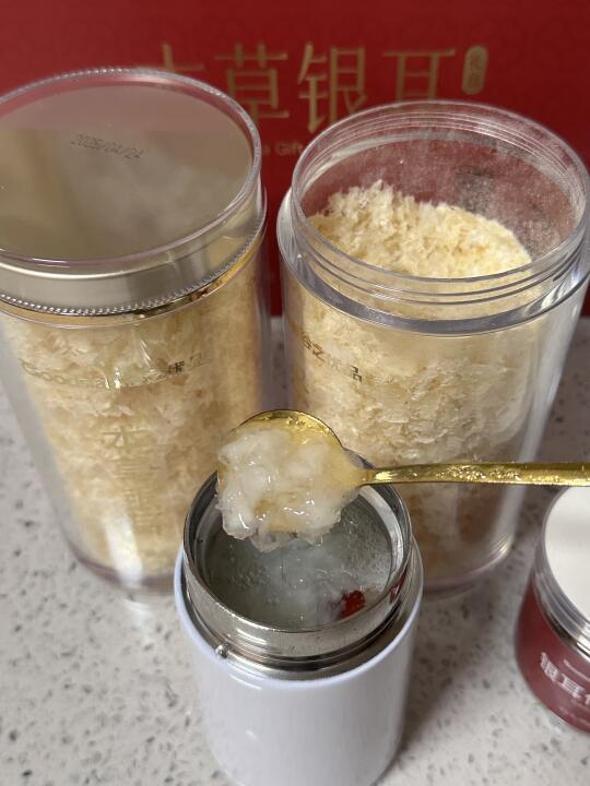 里面有2罐银耳+红枣伴侣+焖烧杯+小勺子