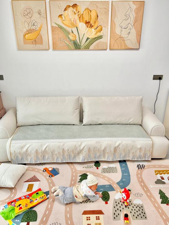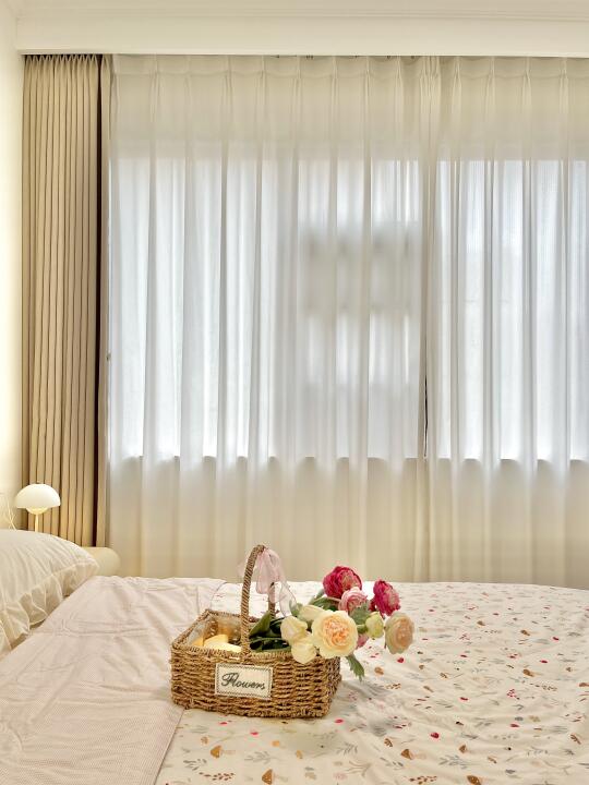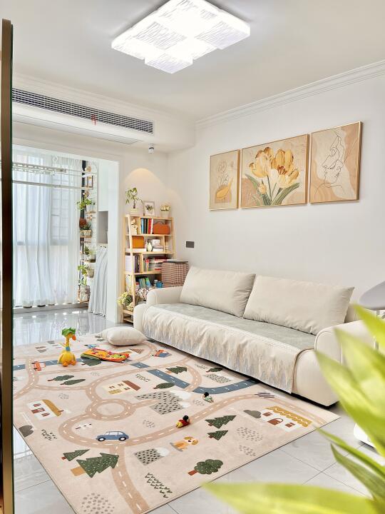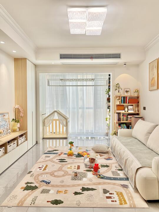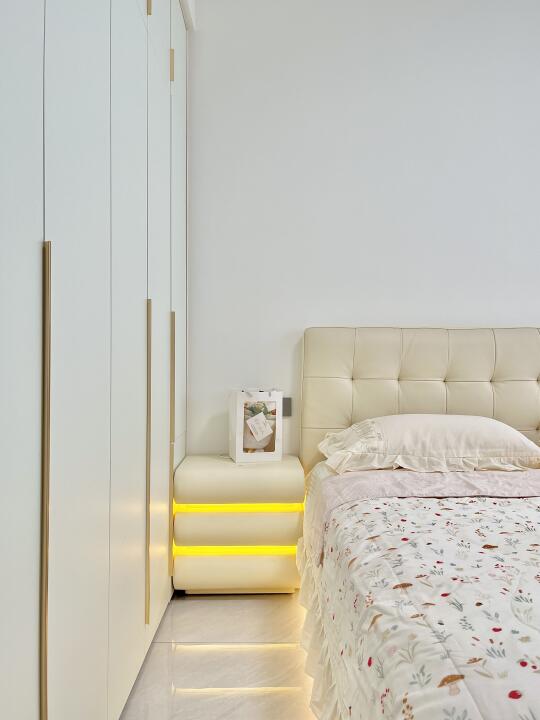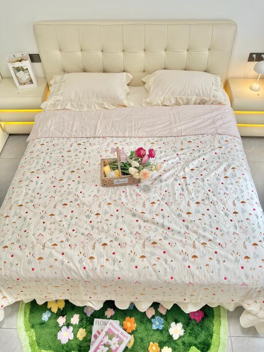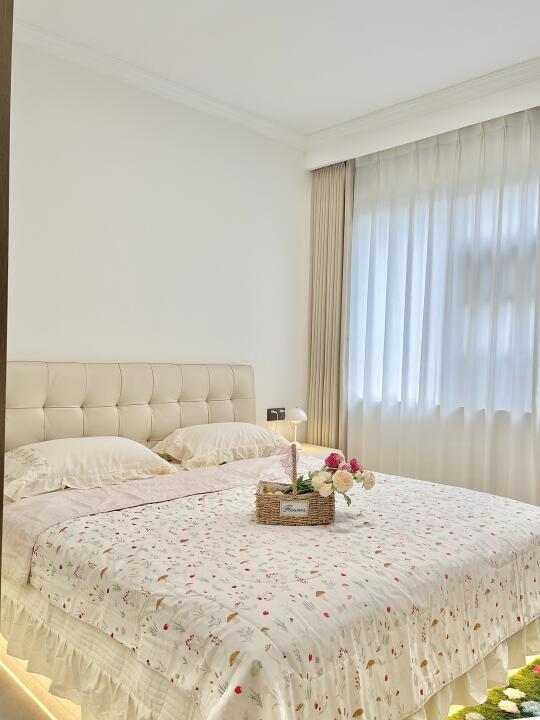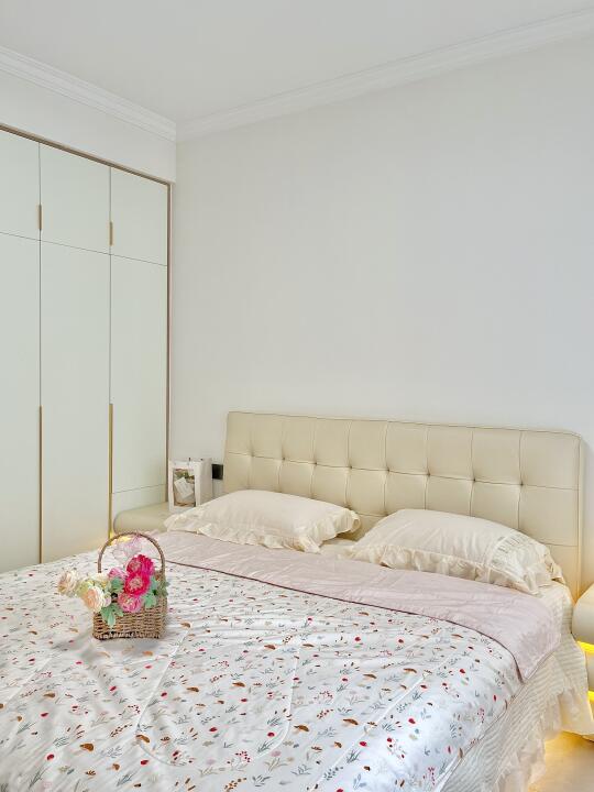 ▪️颜色上:大面积尽量保持在3种以内,我家基本是白色➕奶茶色,区域可以调色,最近天气热了,1.8*2米的床上铺了带清爽颜色的夏凉被,看着也很舒适!