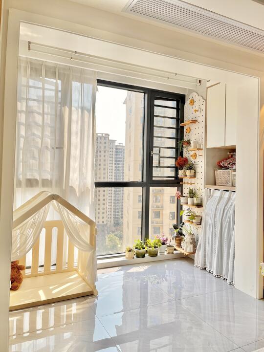 ▪️显大建议:不做复杂设计,通铺地砖,通刷乳胶漆,打通阳台和客厅