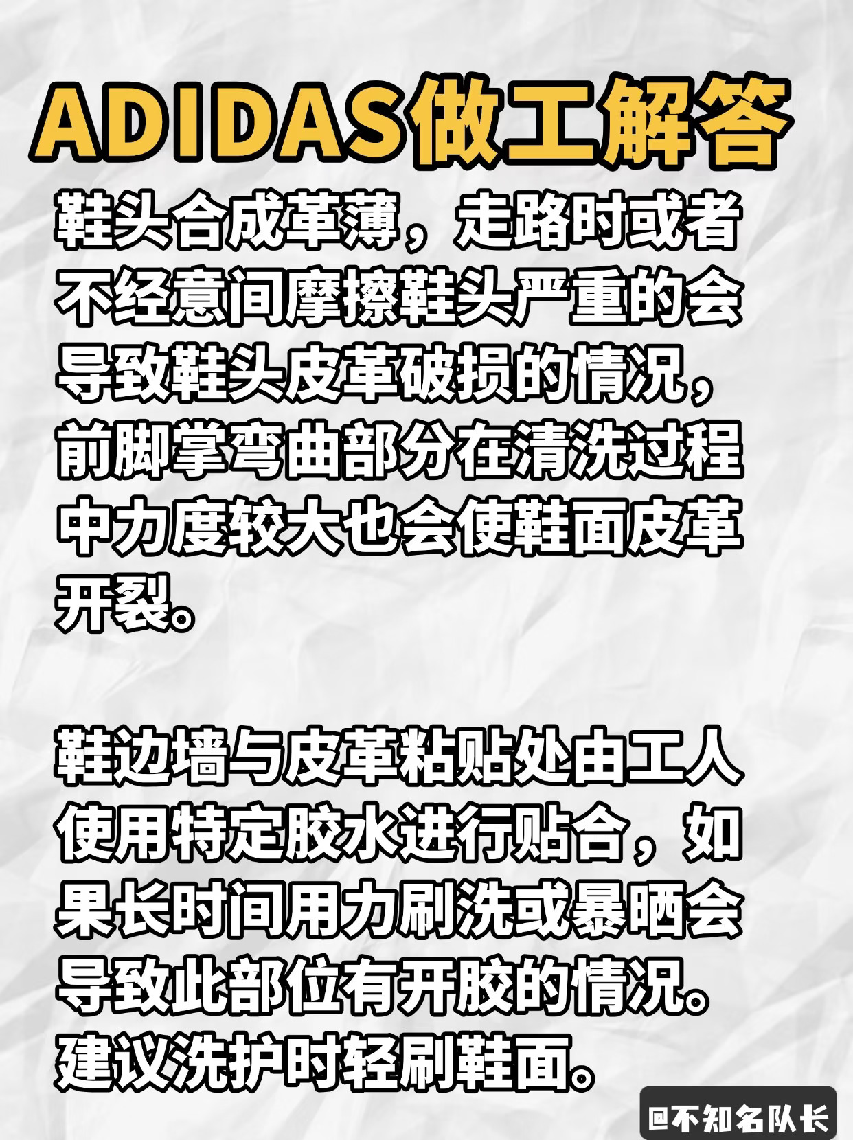鞋子穿久了为什么会开裂,买到假的了??对于这个问题,队长来解答下疑惑~ 鞋头合成革薄,走路时或者不经意间摩擦鞋头严重的会导致鞋头皮革破损的情况,前脚掌弯曲部分在清洗过程中力度较大也会使鞋面皮革开裂。 鞋边墙与皮革粘贴处由工人使用特定胶水进行贴合,如果长时间用力刷洗或暴晒会导致此部位有开胶的情况。建议洗护时轻刷鞋面,开裂与真假无关。 鞋控的日常 不知名队长 最白搭的鞋 婚包选择困难症 阿迪达斯 阿迪达斯neo adidas 球鞋免费鉴定 球鞋鉴定