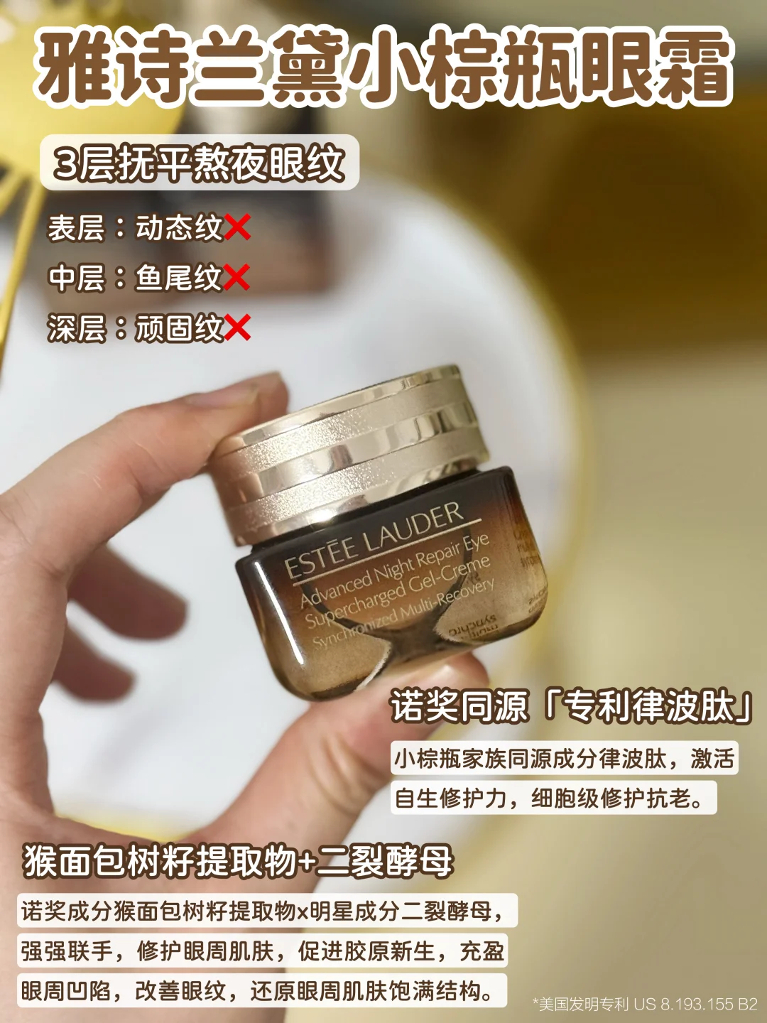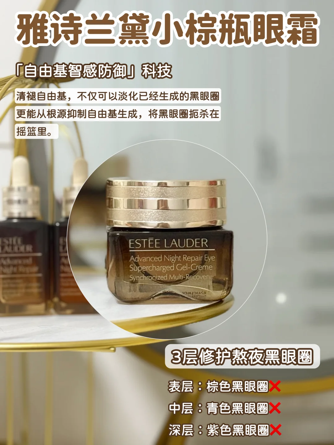 所以说只有分层修护,逐个击破才是真正有效的眼周抗初老!!而雅诗兰黛小棕瓶眼霜它主打的就是三层循序修愈
