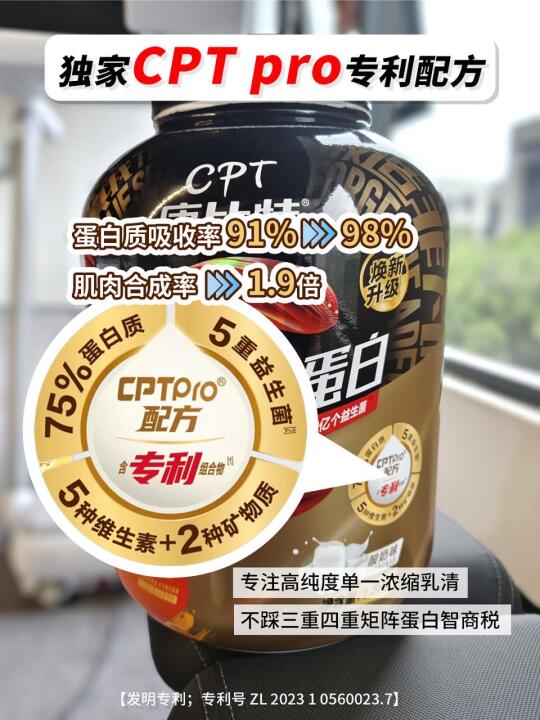 ✅ 必须吹爆康比特的独家CPT PRO黑科技!【发明专利;专利号 ZL 2023 1 0560023.7】这技术直接把蛋白吸收率拉到98%(普通蛋白粉只有91%),肌肉合成速度更是快1.9倍!