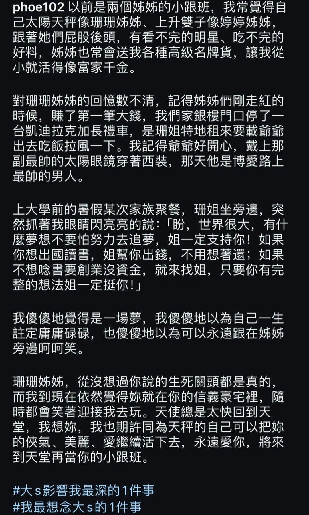 大S表妹回忆当姐姐的小跟班,竟然还要供表妹去读书真的很善良。我都不敢想,大S究竟照耀过多少人[抱抱]