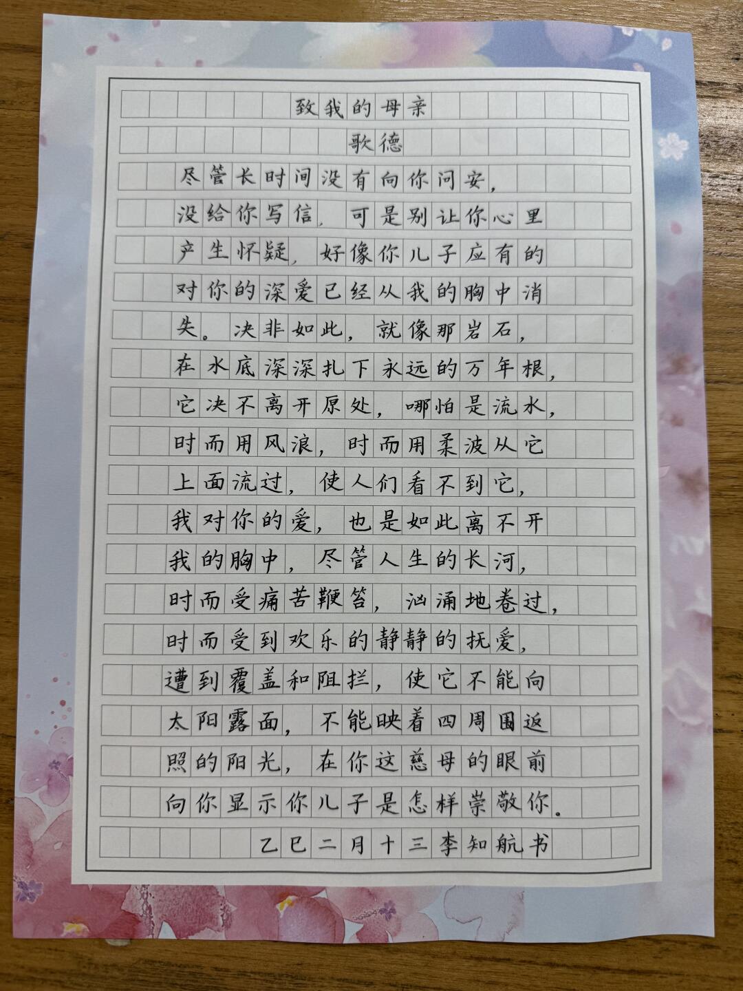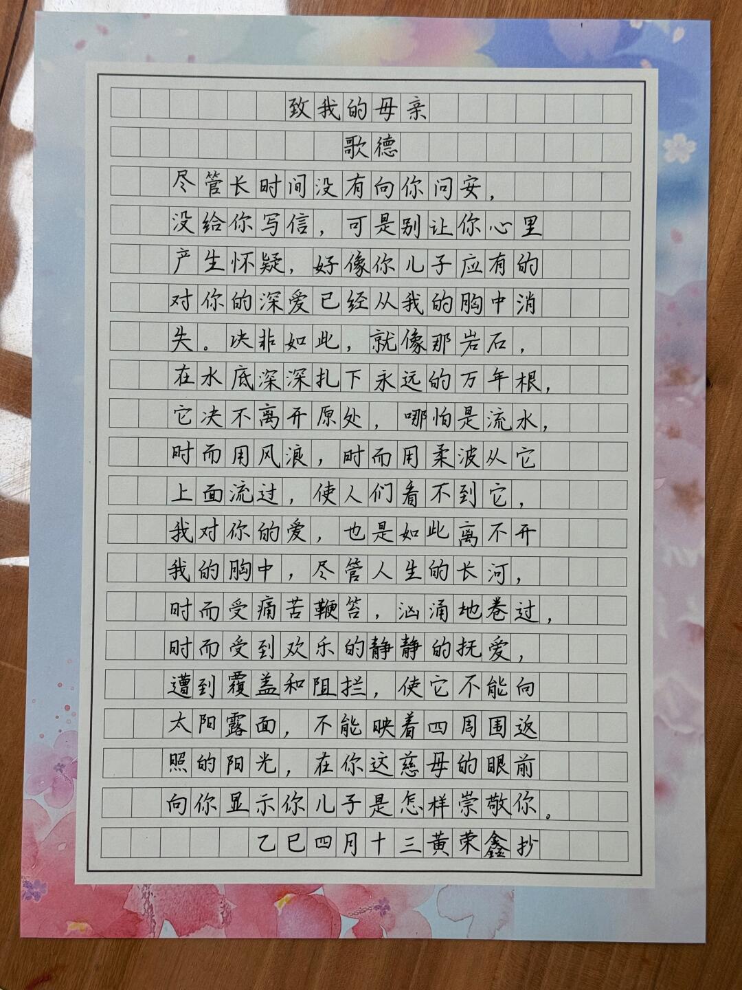 初中班手写|《致我的母亲》🌹