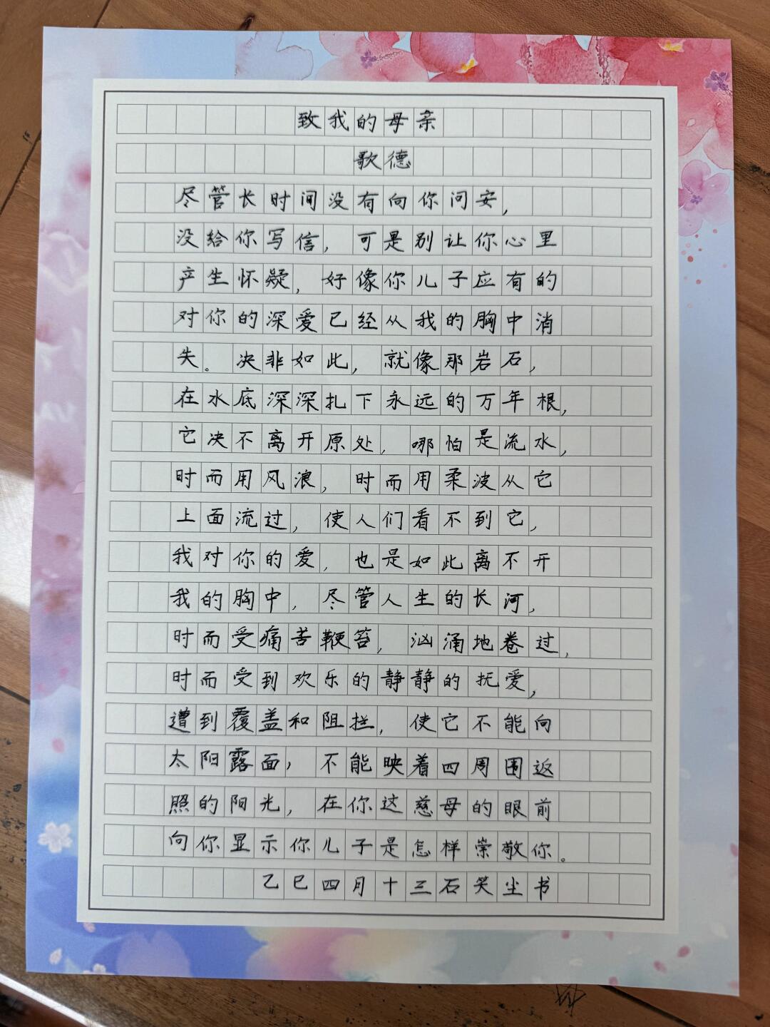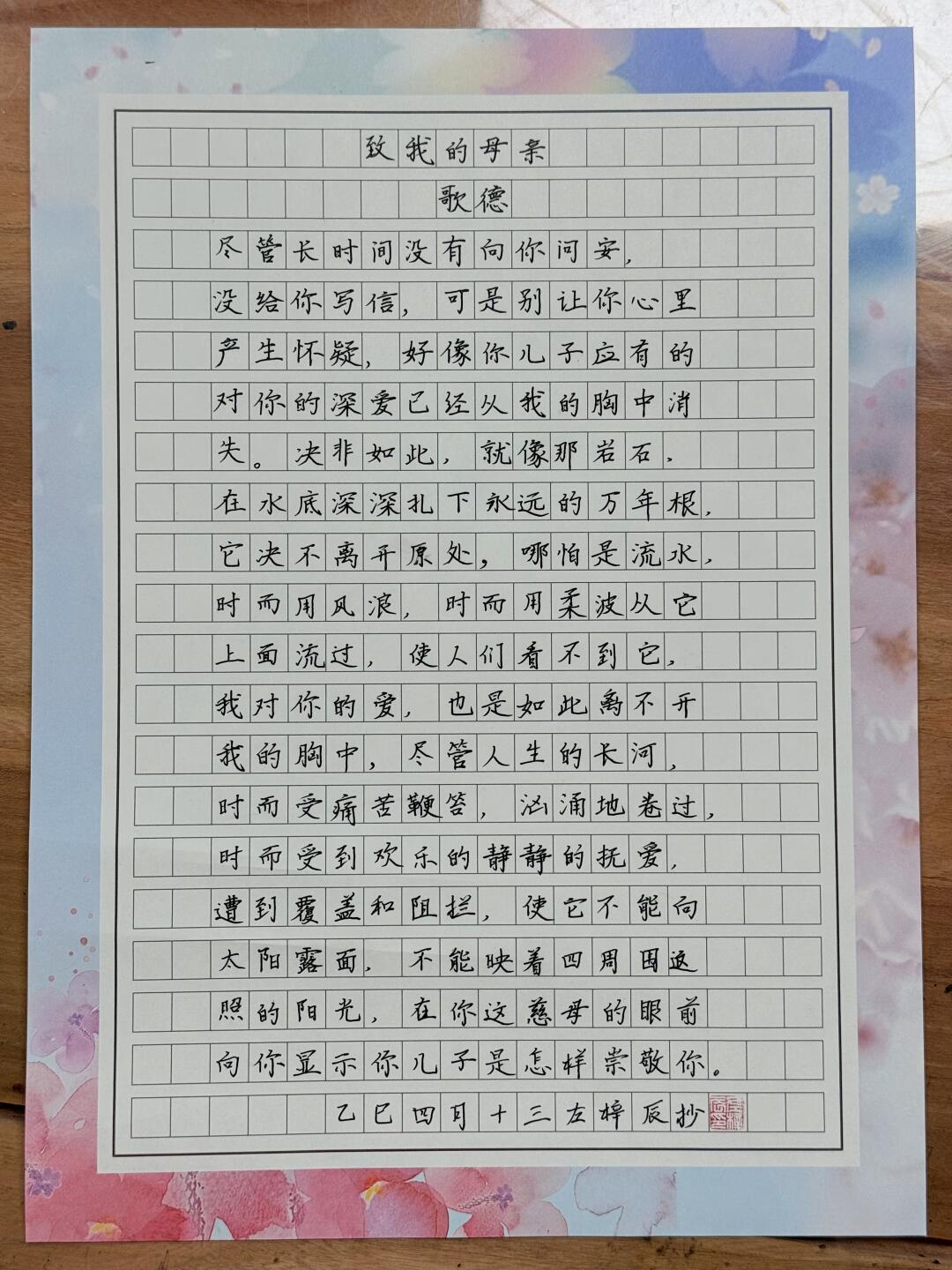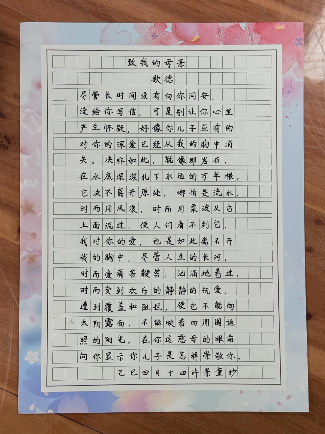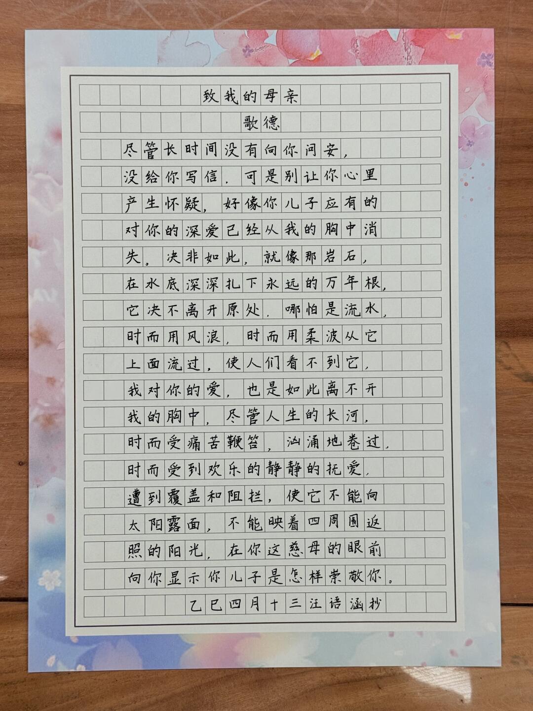 硬笔书法 手写 母亲节快乐 硬笔作品练字 母亲节祝福 诗歌 手写摘抄