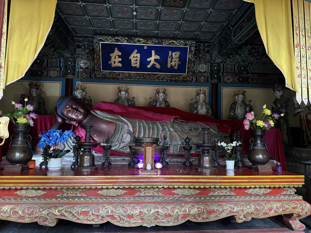 北京卧佛寺即"十方普觉寺"。它位于西山北的寿牛山南麓、香山东侧,距市区30公里。该寺始建于唐贞观年间(627-649),原名兜率寺,又名寿安寺。以后历代有废有建,寺名也随朝代变易有所更改。清雍正十二年重修后改名为普觉寺。由于唐代寺内就有檀木雕成的卧佛。后来元代又在寺内铸造了一尊巨大的释迦牟尼佛涅槃铜像,因此,一般人都把这座寺院叫作"卧佛寺”。