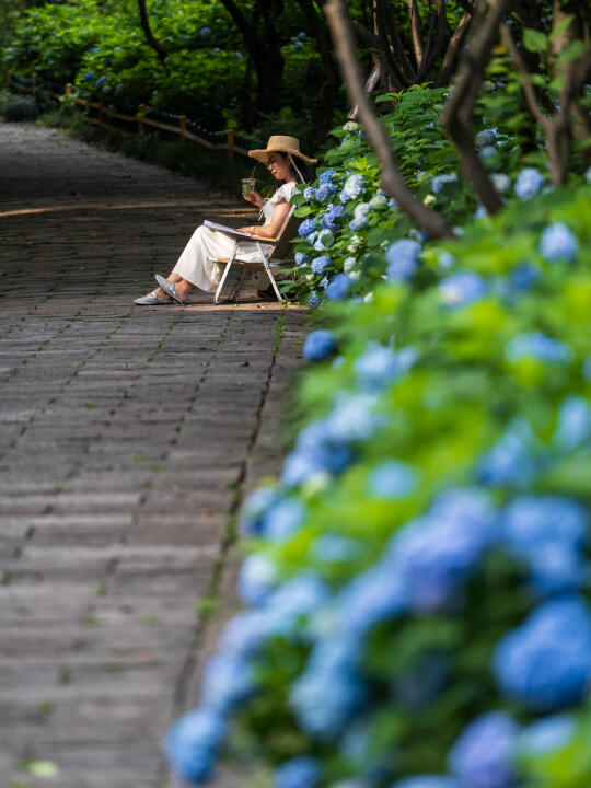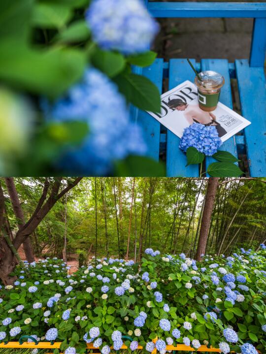 ✅蓝色无尽夏花海:长达500米的山谷中,深浅不一的蓝色绣球铺满栈道与林间,最佳观赏期为5-6月,花期可持续数月。