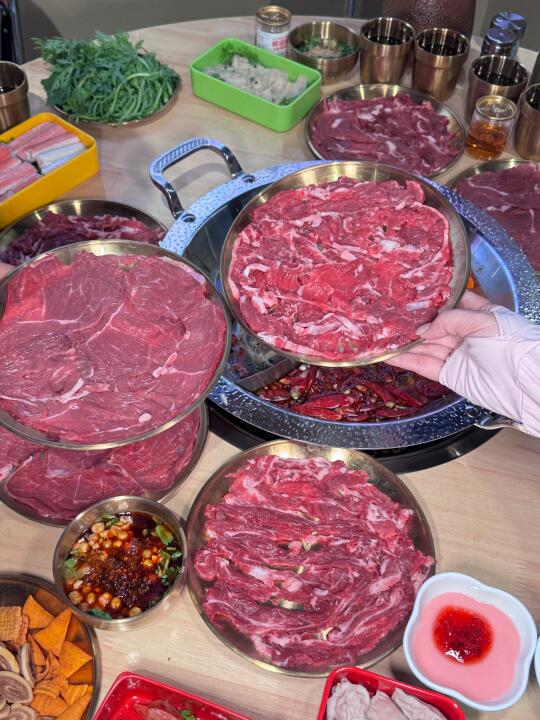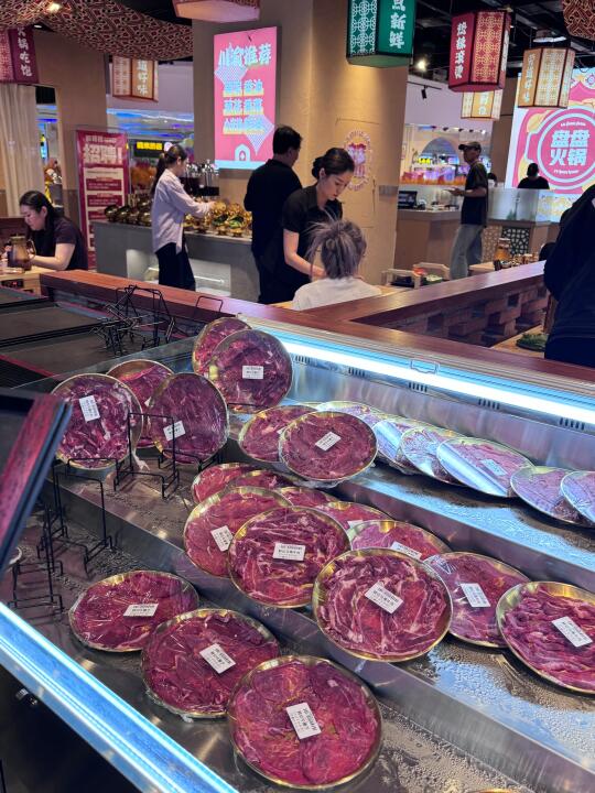 发现一家刚开的无佩奇宝藏火锅店 真的是一整个惊艳住! 他们家菜品价格真的逆天了!3.3元、6.6元、9.9元就能拿下一盘,最贵的菜品也才16.8元。放眼望去,冰柜里各种肉肉🥩 蔬菜🥬 ,品质还超棒,新鲜得没话说!实现了火锅自由! 店内民族风特色,墙壁上居然是纯手绘图案,每一处细节都透露着用心,拍照超级出片📸 无论是和朋友聚会还是情侣约会,氛围都超合适~