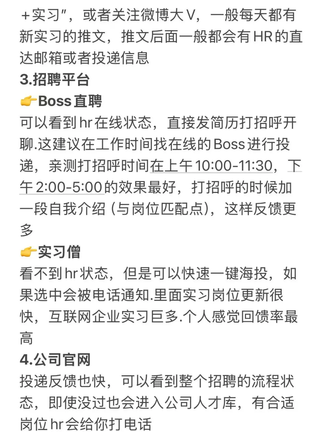 (2)最好的时间是早上9-11点,下午2-4点,这个时候hr刚刚上班,一般会检查邮箱