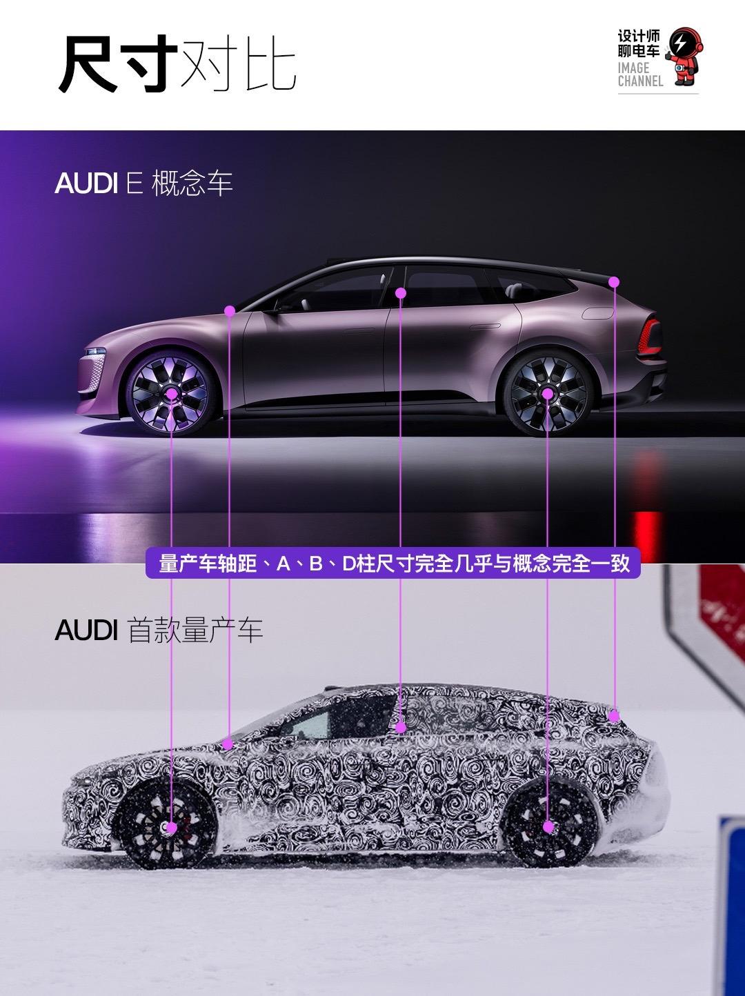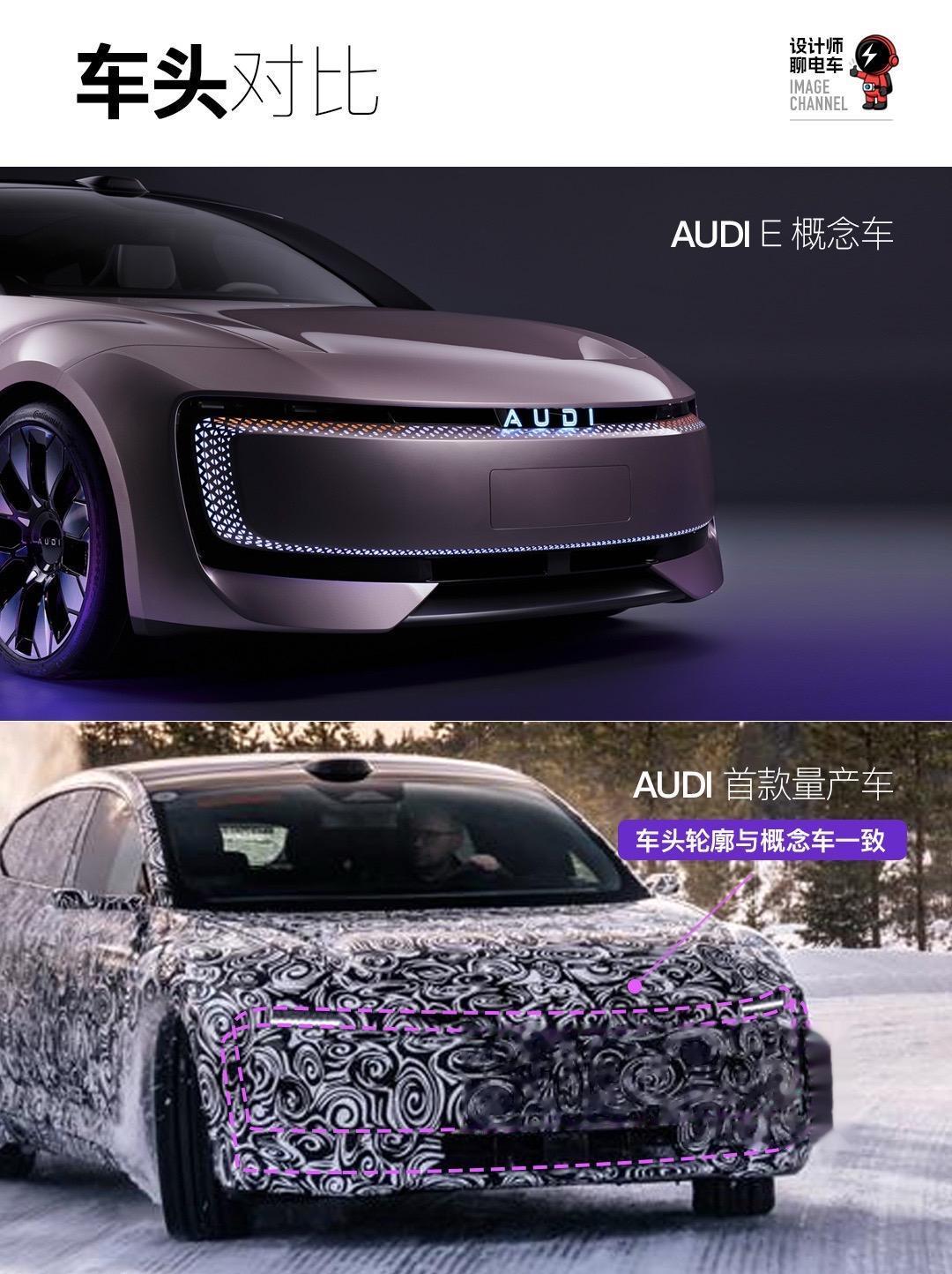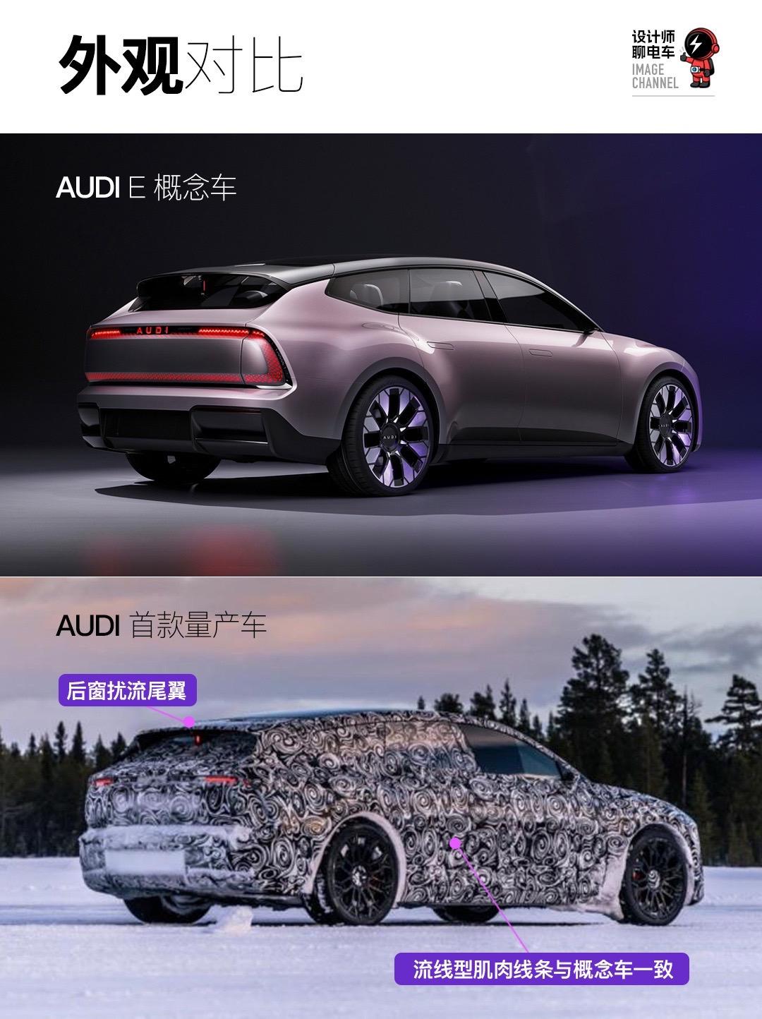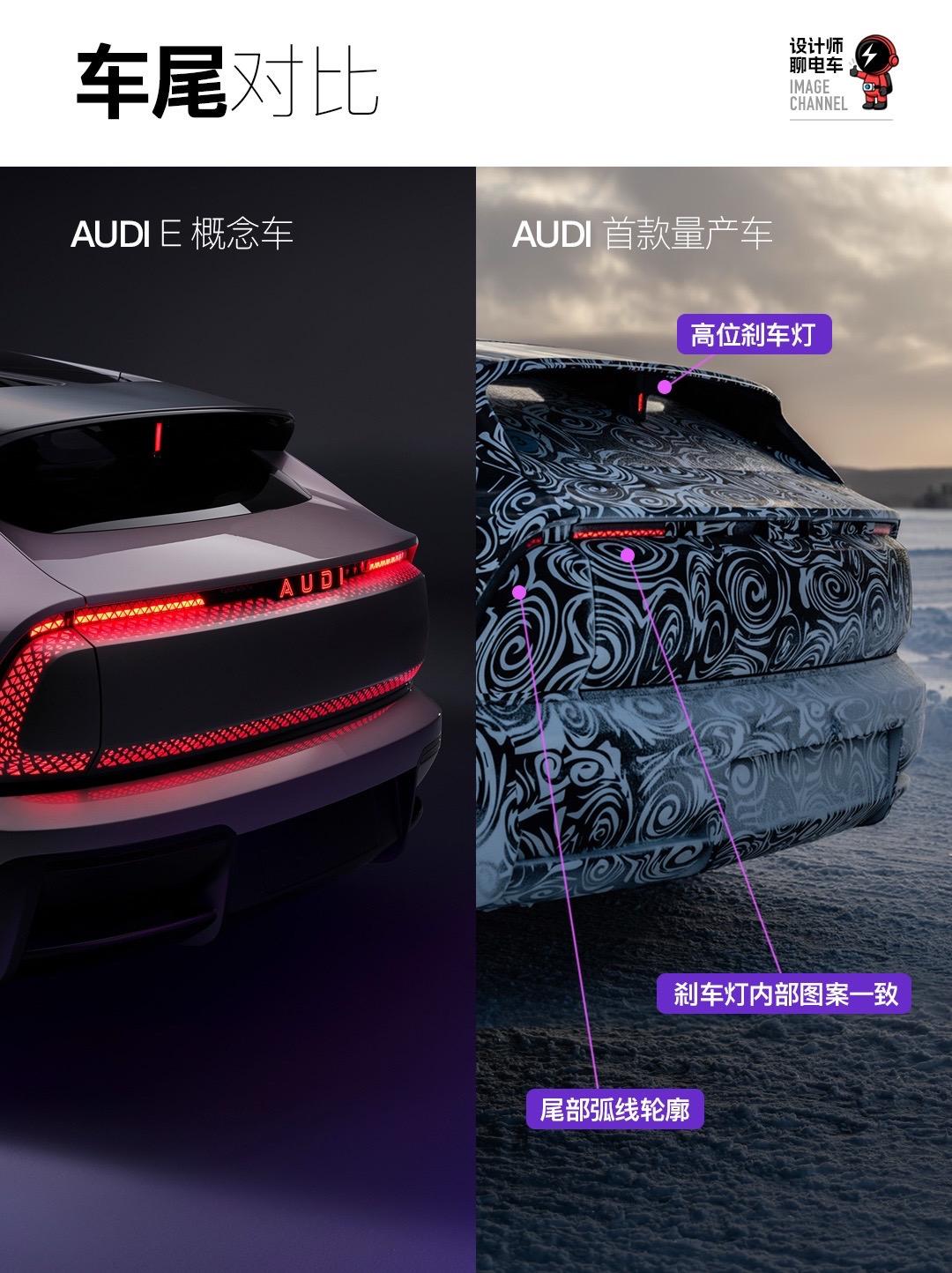 概念车直接量产?奥迪工业美学又进化了。概念车直接量产?AUDI这次够给力啊!去年广州车展上最亮眼车之一就是AUDI E概念车,未来科技感的外观设计,让人到现在还记得。特别是它前后车灯的设计,打破了现在新能源车型眯眯眼+贯穿式尾灯的套娃模式,前后呼应的星环灯组很有辨识度,猎装造型也让车身姿态非常优雅,一直很期待它量产后的样子是否能保留下车灯的设计。