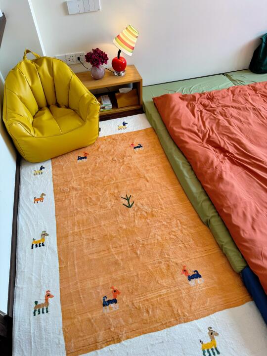 这是一间书房➕客房 没有床,因为我们是多孩家庭,没有大床睡得下 所以回家就铺个可折叠的四折床垫,好收纳 平常就是一间多功能房(如图8) 可当休闲区,可当书房 端午回家时,小朋友太多,就这么铺起来 我妈开玩笑说,多生几个吧,睡七八个没问题,哈哈~