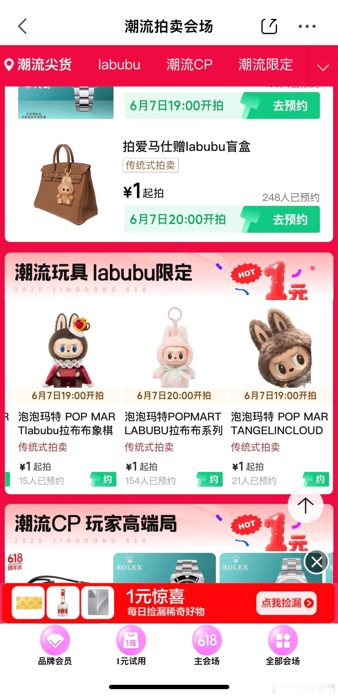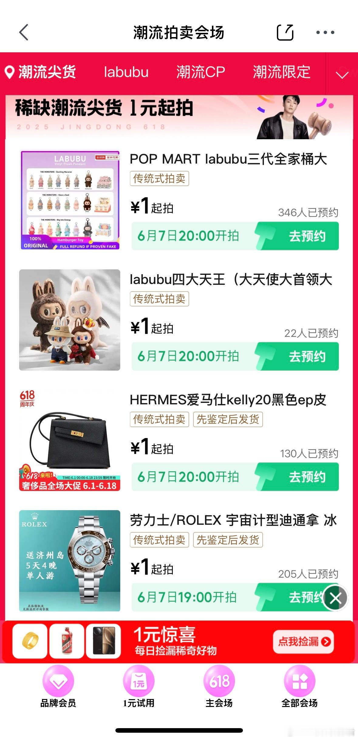 京东上架多款稀缺labubu 顶流labubu就这么水灵灵地在京东拍卖上架了?点进页面一看,那些蹲点抢不到、溢价求不得的稀有款居然都在这里🤩,不得不说太有实力了,京东背着我们偷偷藏了这么多好货!现在上京东搜“京东拍卖”点“潮流日惊喜”,快来预约6月7日晚8点的竞拍活动吧~感觉明天拍卖场面会很热闹,期待住了![哇][哇]
