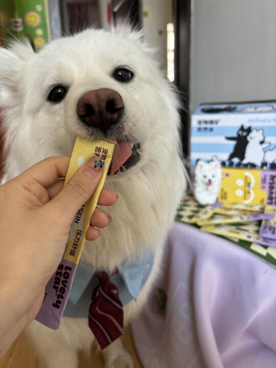 它有个炒鸡可爱的名字哦 叫快乐酪酪 麻麻说要给我补充下营养 里面添加了法国进口酪蛋白 可以缓解压力哦 还可以增强宝宝的免疫系统呢 鸡肉、鸡肝、羊乳粉、维生素等都有呢 适口性可是很好呢 对宝宝的肠胃也是很友好的哦 我去年还得过膀胱炎 这个营养条也是可以舒缓泌尿系统的 一条多得 充分补充营养 宝宝又是强壮的宝宝团啦 🫡