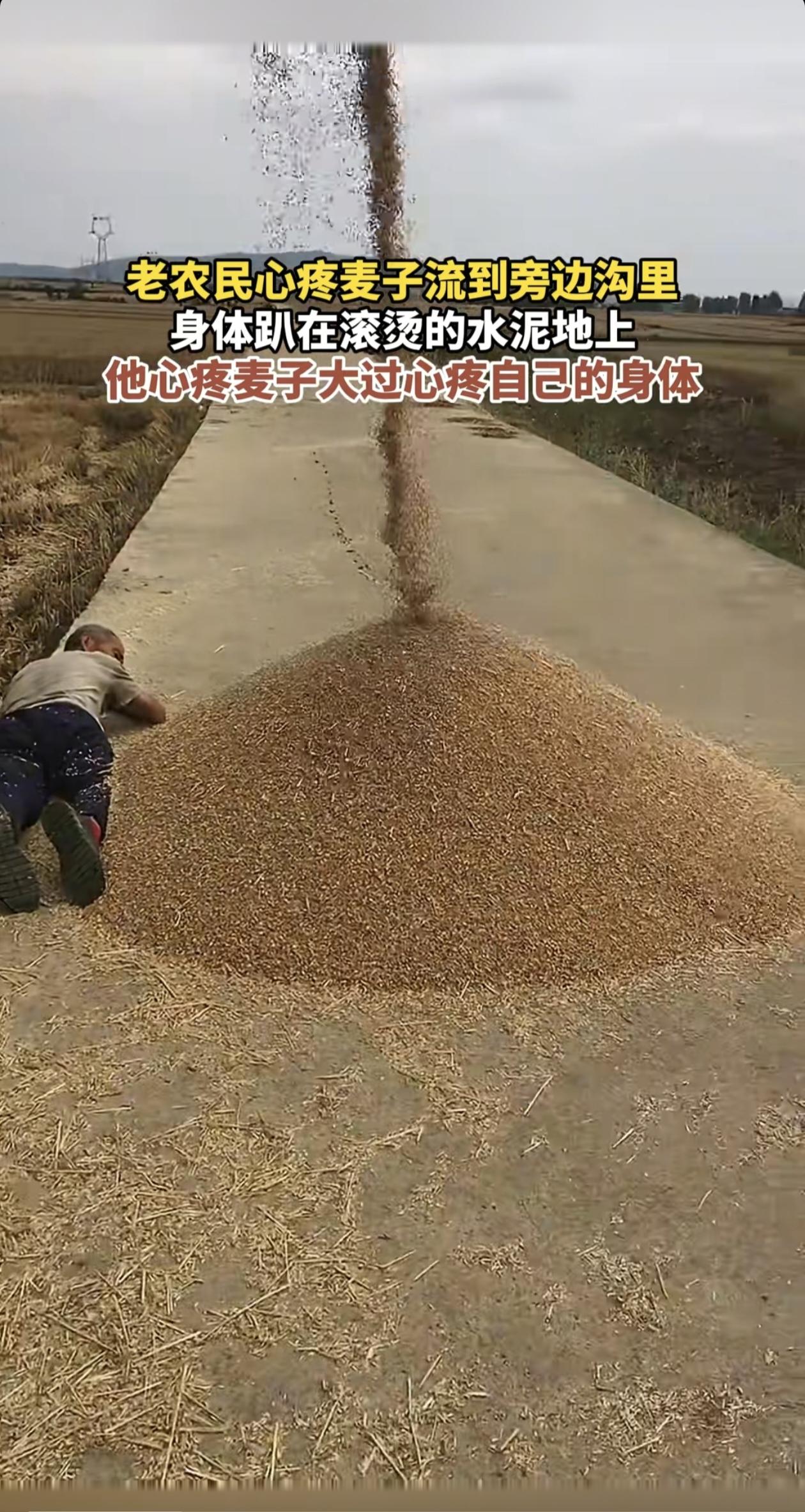 泪目!老农民心疼麦子吹走,身体趴在滚烫的水泥地上,挡住流走的麦子。可是他不知道的是,他拼命挽救的麦子,要一百斤才能买得起一个面包呀! 小时候,特别不理解。明明家里食物够吃,爷爷奶奶每年秋收后都要拎个麻袋去秋收后的地里一点点捡起遗落的散掉的黄豆和稻子。 家门前是水泥地面,但有一条裂缝,晒麦子和稻谷的时候麦子会卡进里面,等麦子晒干了父亲会把裂缝里的麦子一粒一粒抠出来。 后来工作了才慢慢懂得了,那是他们付出多少个日夜,多少汗水,辛勤孕育出来的,所以他们会格外的珍惜,其中受的苦,只有他们自己知道。 都说谷贱伤农,但是往往真的只是口号,农民的利益真的需要好好保护一下,他们辛辛苦苦种的麦子,被商人做成面包,自己却买不起了,真令人心寒呢! 我们父亲60,70那一辈,是最心疼粮食的那一代人,也是最能吃苦的那一代人,可是他们现在都慢慢老了。 如果真的是天道酬勤,那最先富裕的就应该是农民。但是事实是,他们要卖近万斤的麦子才能买得起一个最新版的苹果手机! 看完真的泪目了,感觉莫名的心酸,希望他们辛苦的劳动被更多的人看见,而不是都去报道那些带货的网红们! 信息来源于: 抖音用户飞白有画说
