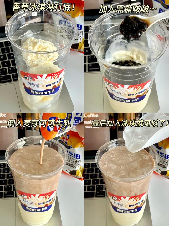 麦芽可可牛乳➕香草冰淇淋➕脆啵啵➕冰块