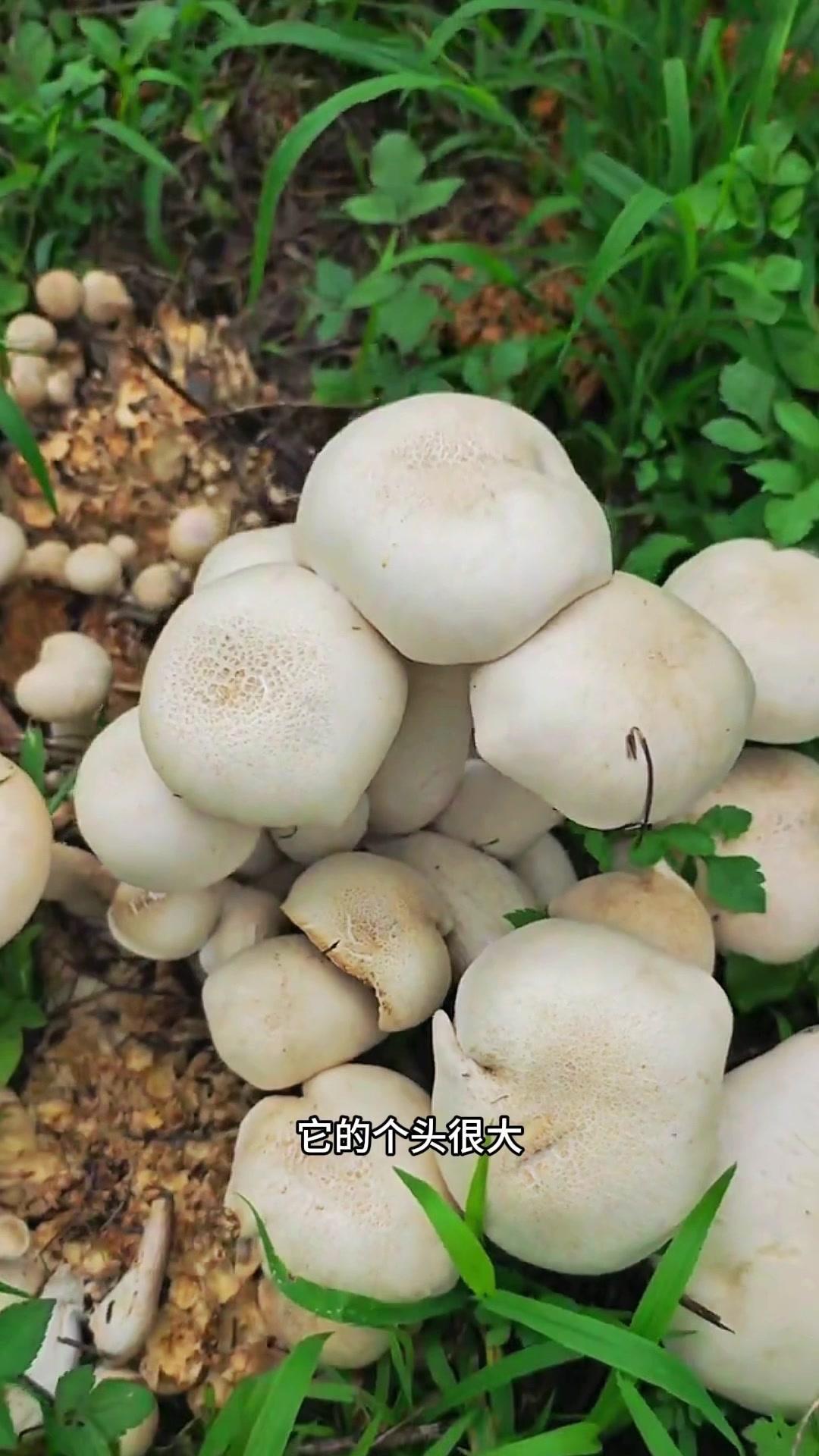 1️⃣个头很大,一朵挨着一朵,如图是刚拍完照的菌子,是堂弟捡的,据说可以长到非常大。 2️⃣拿来炒着吃,非常清甜,口感也很不错。我随便洗了几朵,撕成小块下锅炒。 3️⃣刚开始的时候是打算丢掉的,因为不知道有没有毒,后面查了一下,它叫巨大口蘑,是可以食用的。 4️⃣简单加了点油炒,调味只加了一点盐和一点葱头油,就原汁原味的,吃起来很清甜,口感相当不错。
