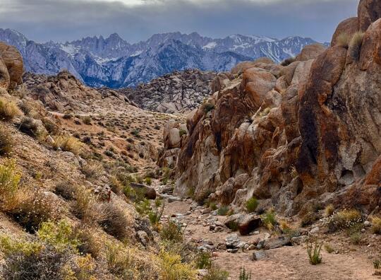 是离小镇很近的土路,可以看到远处壮观的山脉alabama hills和近处奇形怪状的石头🪨