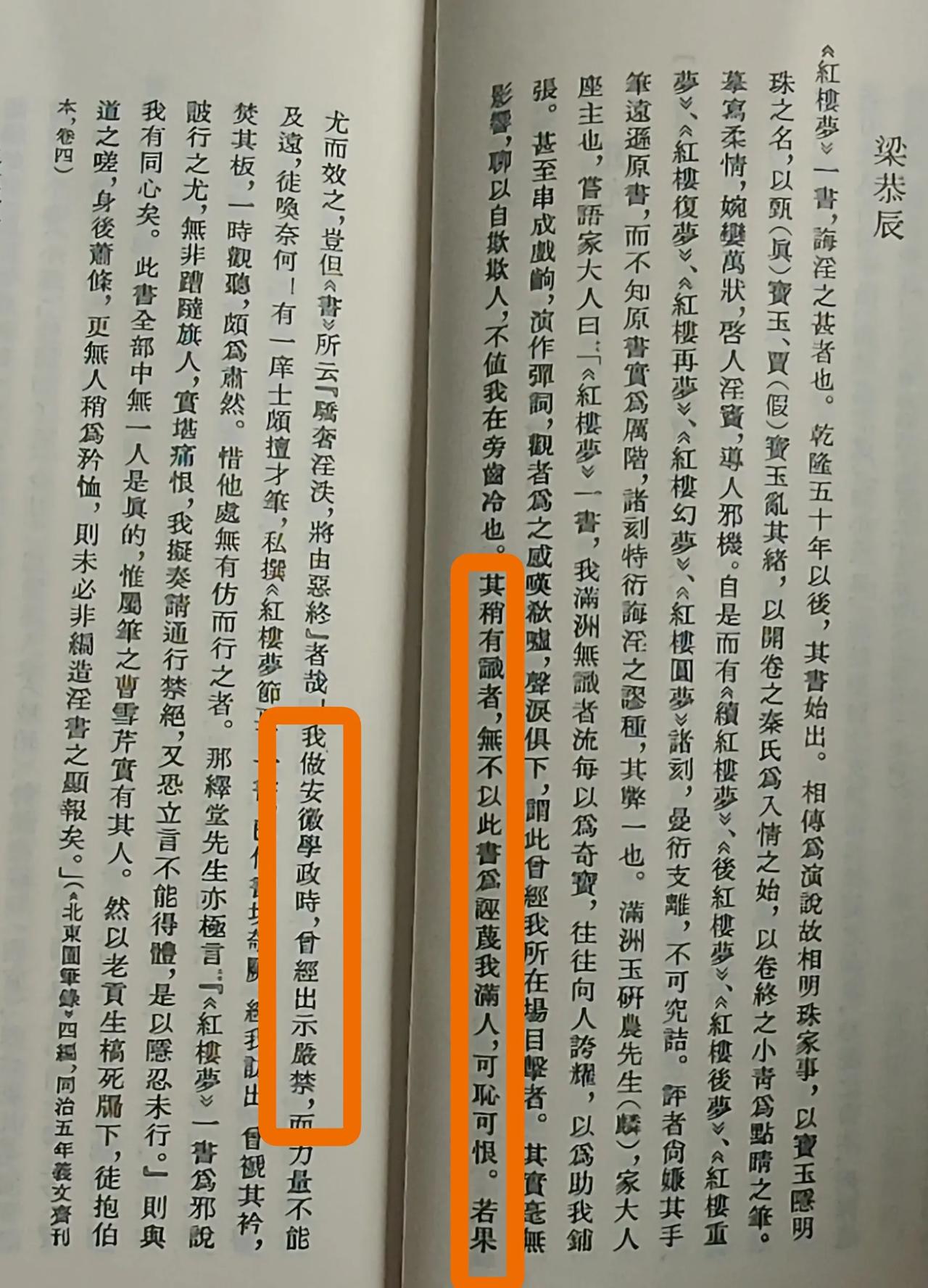 红楼梦是禁书,原因有“淫书”“反清”。 一粟所编的《红楼梦资料汇编》(全称《古典文学研究资料汇编·红楼梦卷》),书中收录了明确将《红楼梦》指为“禁书”或记载其被禁毁情况的重要史料,清晰地反映了《红楼梦》在历史上曾被官方查禁的事实。 一、《江苏省例·藩政》(同治七年) 同治七年四月十五日,江苏巡抚丁日昌颁布查禁“淫词小说”的饬令,开列了应禁书目共计268种。《红楼梦》及其主要续书《续红楼梦》、《后红楼梦》、《补红楼梦》、《红楼圆梦》、《红楼复梦》、《增补红楼》、《红楼重梦》等赫然在列。 此事亦见于陈其元《庸闲斋笔记》(卷八) 淫书以《红楼梦》为最,盖描摹痴男女情性,其字面绝不露一淫字,令人目想神游,而意为之移,所谓大盗不操干矛也……丰润丁雨生中丞巡抚江苏时,严行禁止,而卒不能绝,则以文人学士多好之之故。” 同治七年(1868年)江苏巡抚丁日昌(丁雨生)在查禁“淫词小说”时,将《红楼梦》及其续书明确列入禁毁书目。 二、梁恭辰《北东园笔录·四编》(卷四),同治五年 《红楼梦》一书,诲淫之甚者也……满洲玉研农先生(麟)家大人尝语之云:“《红楼梦》一书,我满洲无识者流每以为奇宝,往往向人夸耀……其稍有识者,无不以此书为诬蔑我满人,可耻可恨......我做安徽学政时,曾经出示严禁,而力量不能及远,徒唤奈何!……”那绎堂先生亦言:“《红楼梦》一书为邪说诐行之尤,无非糟蹋旗人,实堪痛恨!” 梁恭辰其父梁章钜的座主玉麟(1766-1833),“其稍有识者,无不以此书为诬蔑我满人,可耻可恨。” 那彦成,字绎堂(1763年-1833年),“《红楼梦》一书,为邪说波行之尤,无非糟蹋旗人,实堪痛恨。我拟奏请通行禁绝,又恐立言不能得体,是以忍隐未行。” 玉麟和那彦成认为红楼梦“诬蔑满人”“糟蹋满人”。这让否认红楼梦反清悼明的汗颜。 “《红楼梦》一书,我满洲无识者流每以为奇宝,往往向人夸耀。”红楼梦隐藏的太深了!