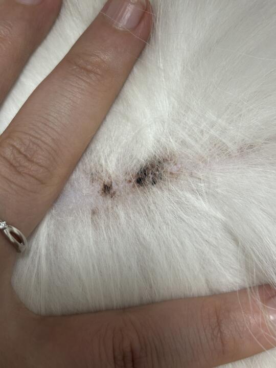 —— 今天给团团驱虫 突然发现很多快黑色的像结痂的东西 这是皮肤病吗 ??该怎么治疗啊 在线等挺急的