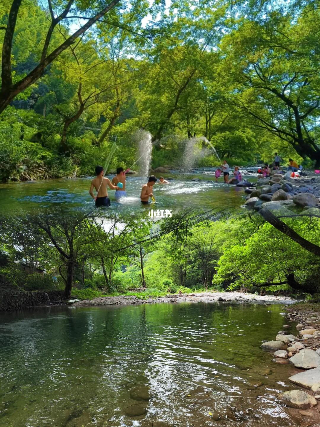 🌸点评:水域很宽阔,水质非常好,儿童玩起来相对安全!溪流里有小鱼小虾,记得多带点儿童玩的玩具,和漂浮玩具。