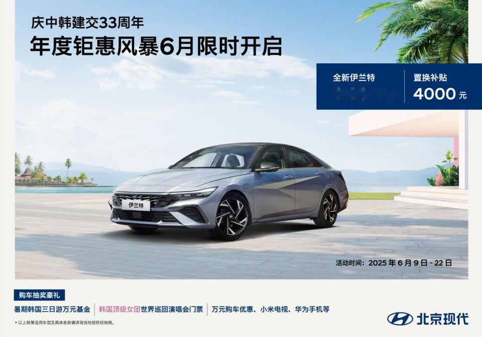 6月买北京现代,购任意车型即可抽BLACKPINK香港站门票和韩国三日游万元旅行基金!买车前,别忘了付1.88元意向金,还能参与疯狂618盲盒抽奖——小米75寸电视、华为Pocket2手机等你拿回家!想置换的也别错过这波优惠,全新伊兰特起售价6.98万,6月置换再享4000元补贴!这台A级超能战车,搭载1.5L/1.4T发动机,WLTC综合油耗低至5.1L/100km,全系标配10.25英寸双联屏、L2级智驾辅助、语音识别、远程车控,科技感拉满!给你全方位的越级体验! 买车送BLACKPINK演唱会门票 韩流重启北京现代终于开窍了