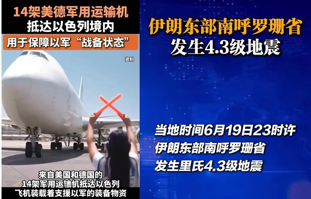 大事件,昨天晚上11时左右,伊朗东部城市南呼罗珊省发生4.3级地震,这配合“泥石”超重型导弹发射才符合伊朗称让世界铭记几百年的惊喜,然后美国公布推迟两周决定是否对伊朗进行攻击,大概率伊朗是进行核试爆成功了,但是美德两地14军用运输机运送弹药抵达以色列境内,伊朗的弹药谁能支持?