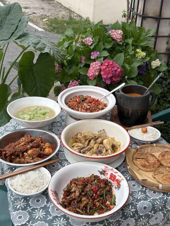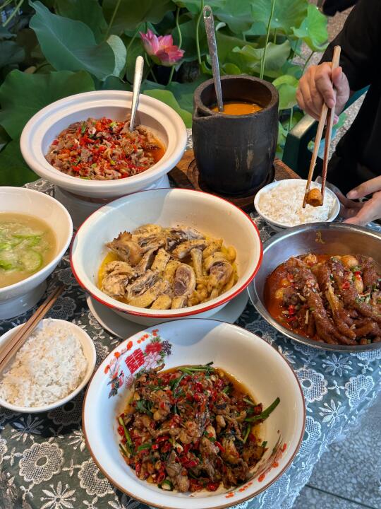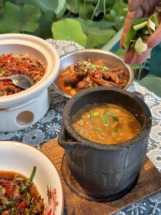 跟对吃很讲究的领导出来工作经常来的一家。 很用心的一家老牌餐馆。 把荷花搬到了餐桌旁~ 吃个简单的午餐都情绪价值拉满、 他家不仅味道好、食材也是非常新鲜和讲究。 蔬菜跟肉类都是从乡下运过来的、 吃的出菜的味道没有什么调料味、都是食材本身自带的清香和鲜甜。 叫(肉联厂)